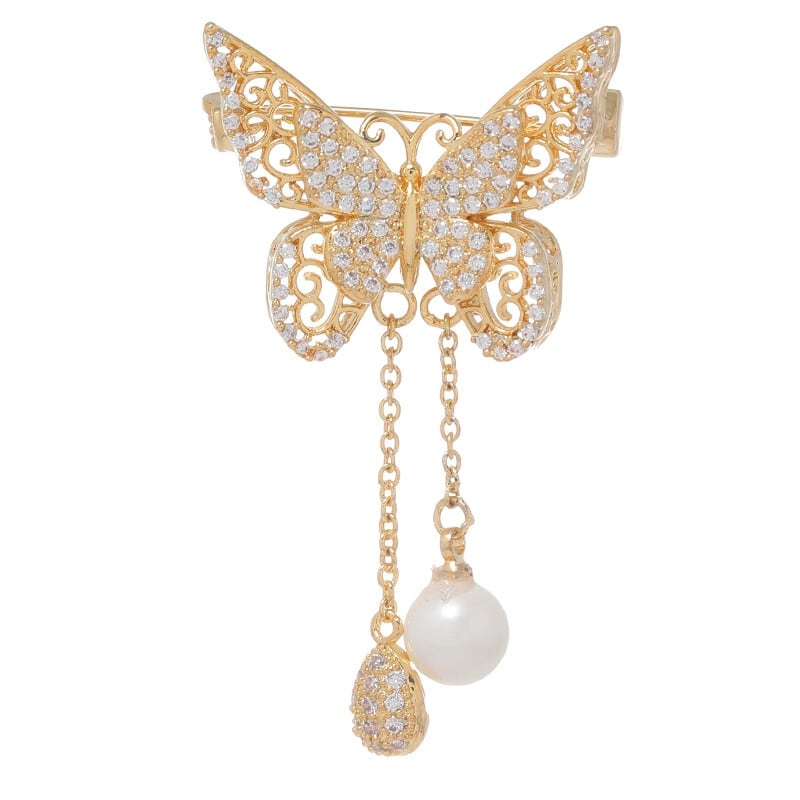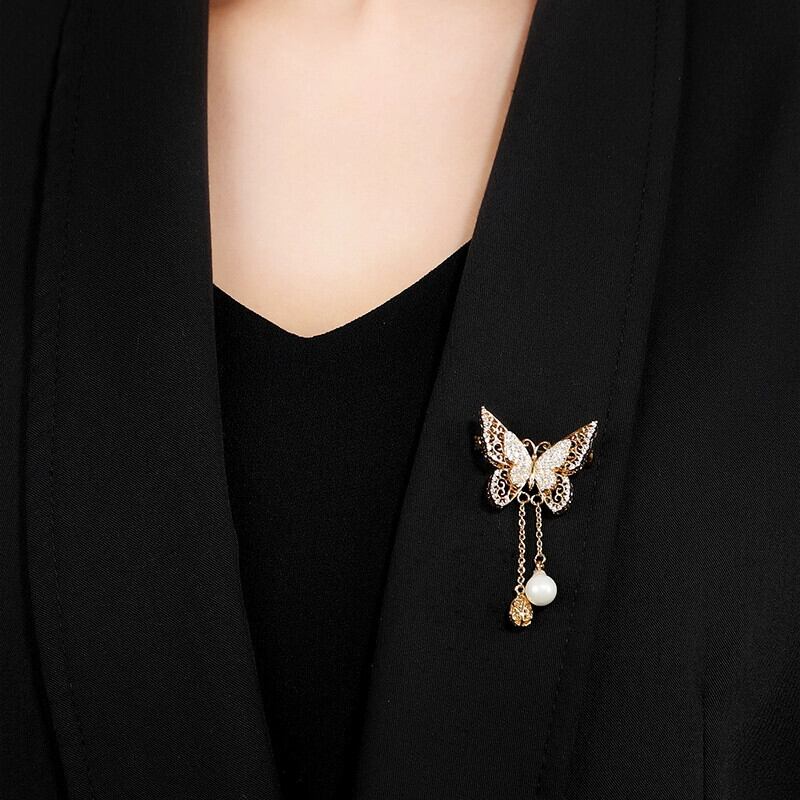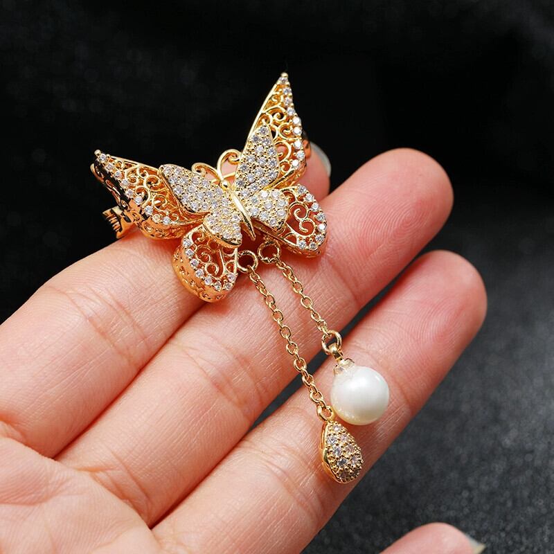 -高級シンプルな蝶のブローチ女性のエレガントなコート多用途気質パールクリスタルコサージュアクセサリー 真珠 shipin82266333809
