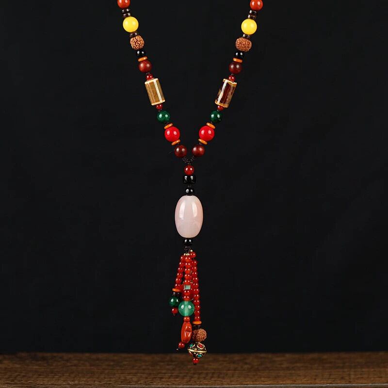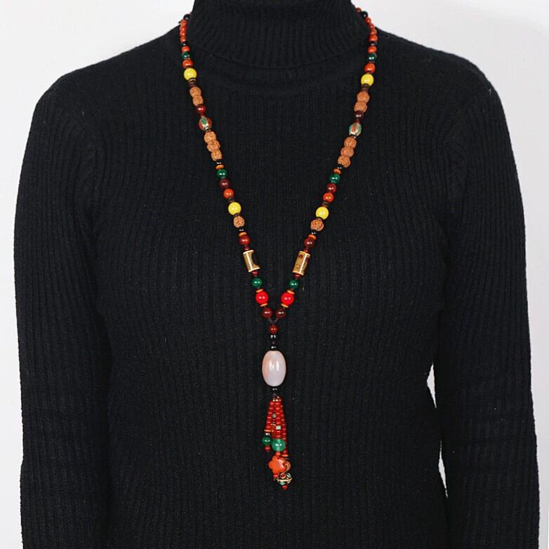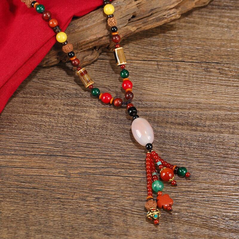 レトロなハイエンド瑪瑙セーターチェーンペンダントエスニックスタイルの女性のロング多用途電話ネックレス気質ペンダント装飾 レース shipin52338413815