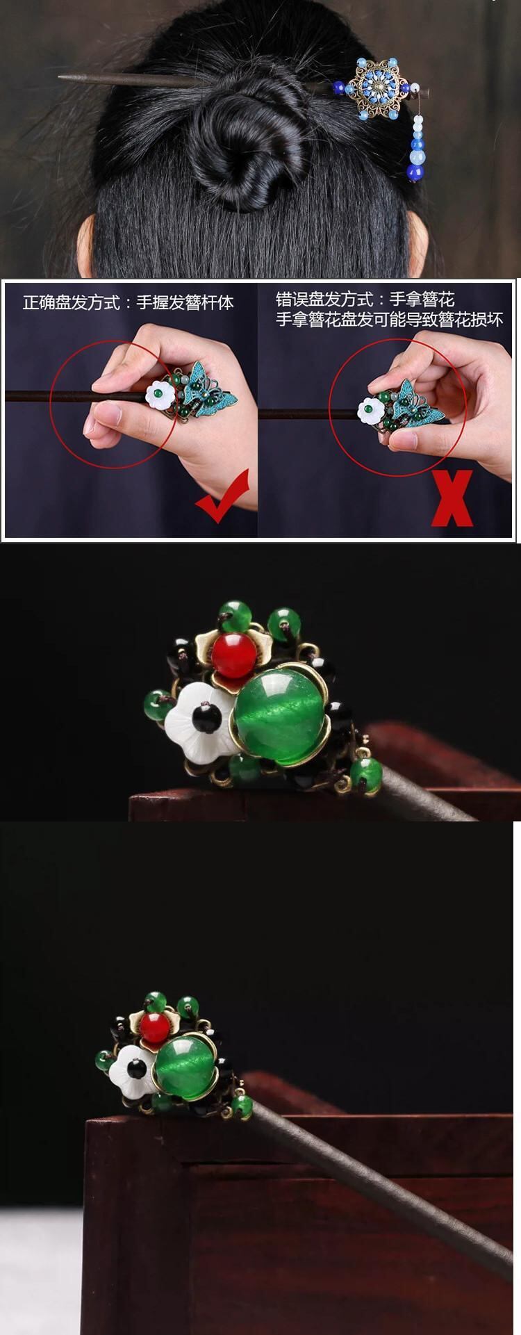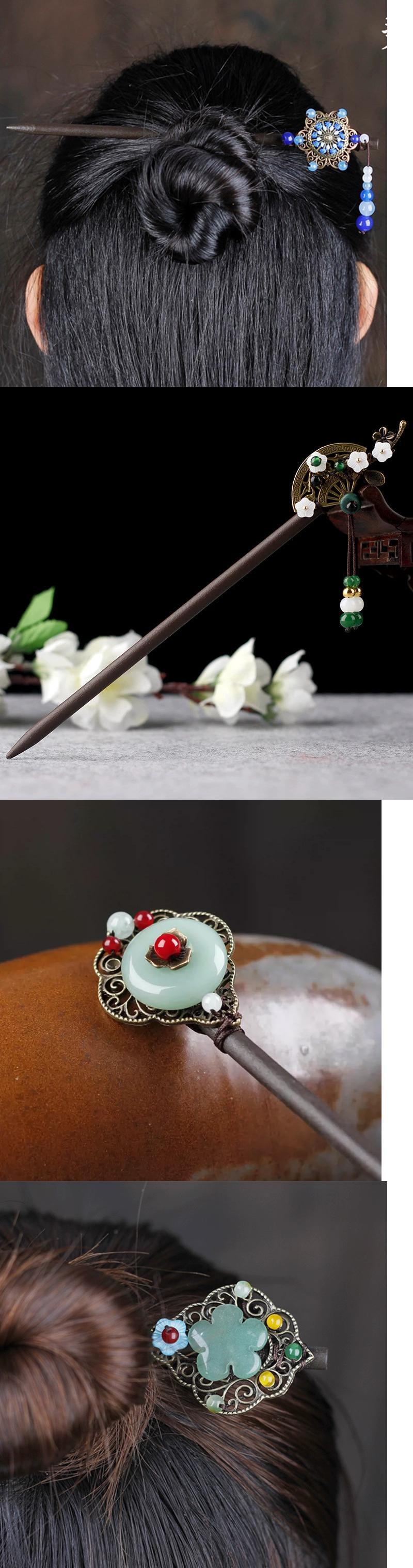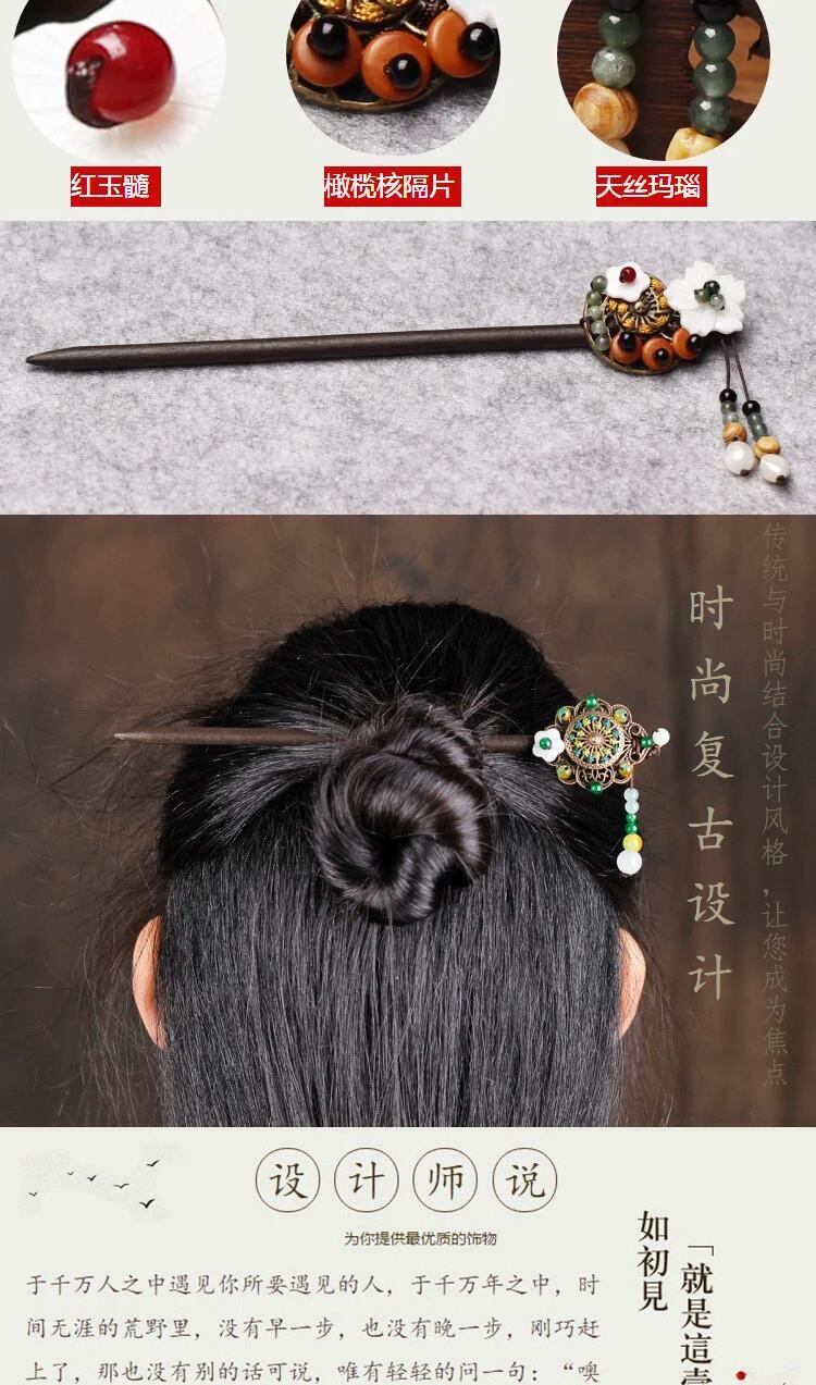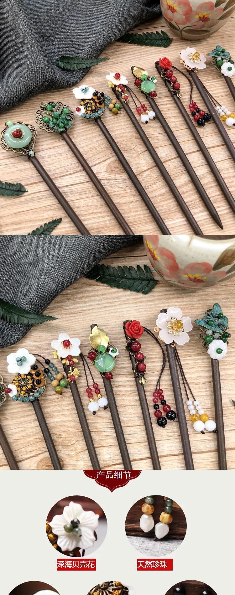 レトロ国家風ステップヘアピン古代スタイル漢服テル頭飾りヘアピン宮殿クリカルプレートヘア木製ヘアピン髪飾り レース shipin74348499473