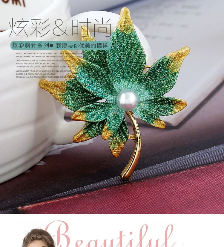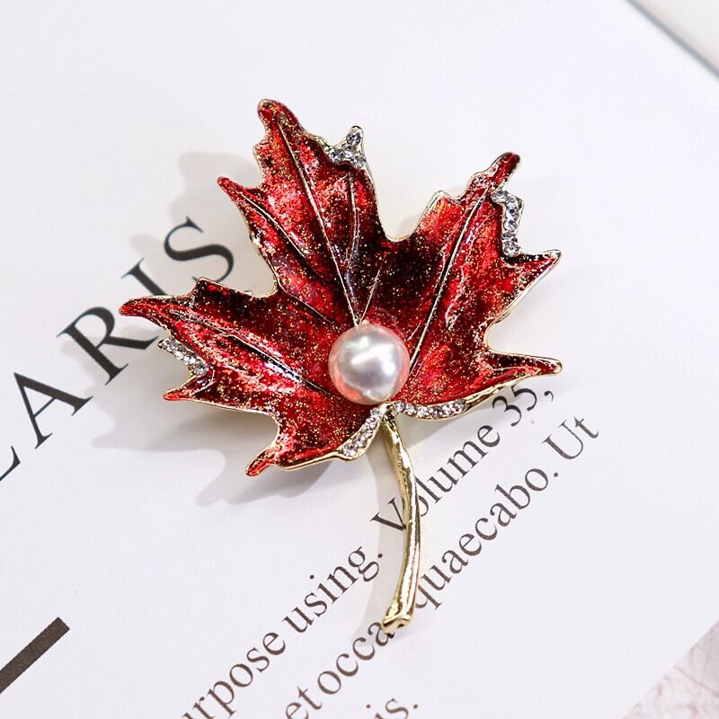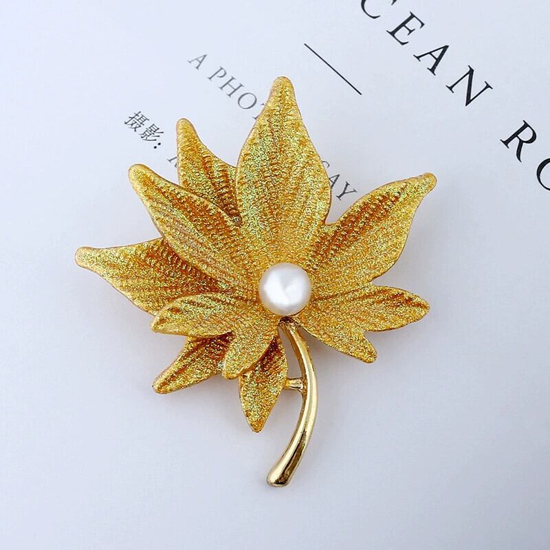 スタイルレトロハイエンドパール二重層メープルリーフブローチ女性のファッショナブルで美しいセータースーツジャケットピンアクセサリー 真珠 shipin13013761987