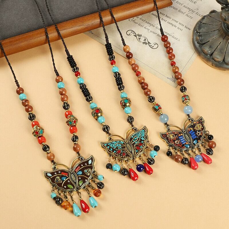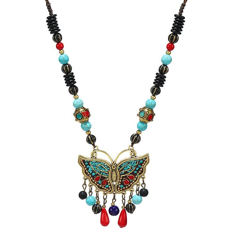 チベットネパール蝶頭飾り ehead チェーンレトロエスニックスタイル電話 ehead 装飾エキゾチックなスタイル眉毛ペンダントネックレス女性 レース shipin61039756902