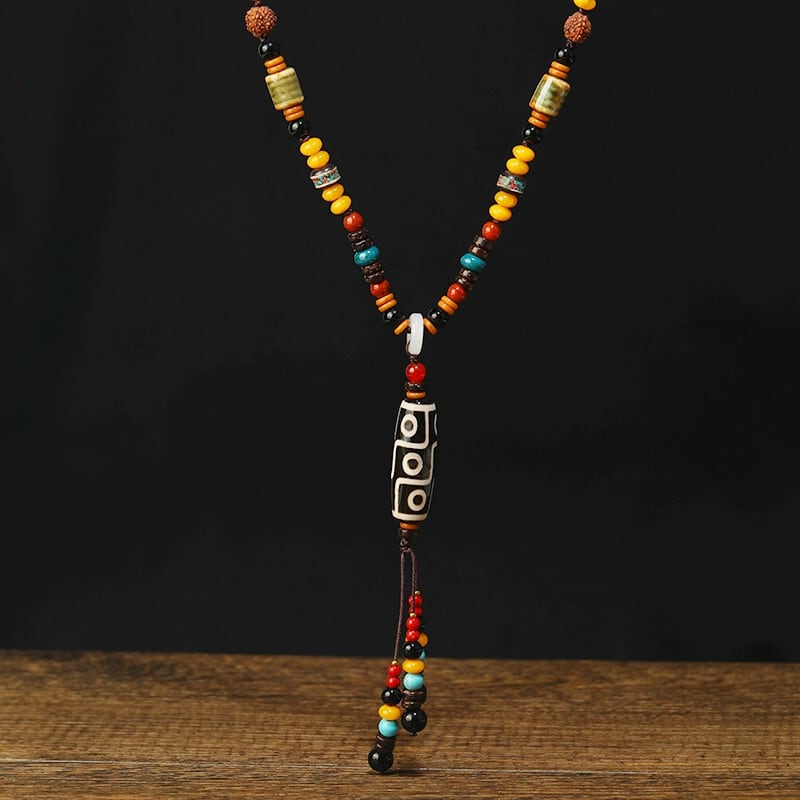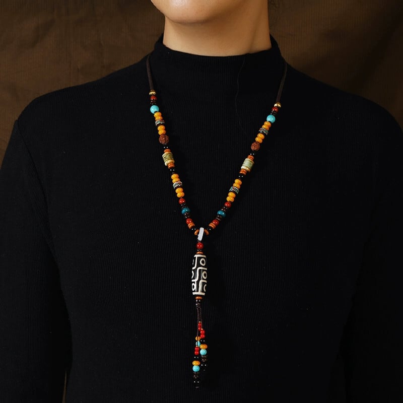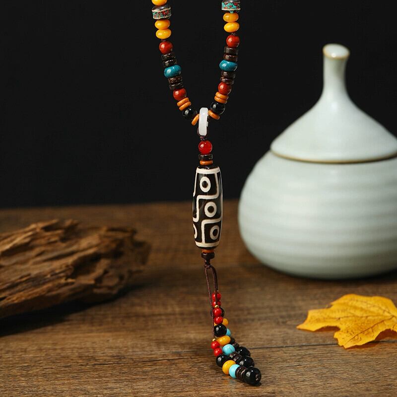 エスニックチベットスタイル九目 Dzi ビーズ瑪瑙ネックレス女性レトロロング秋と冬のセーターチェーンエンド気質ペンダント レース オータム 秋物 ウィンター 冬物 shipin86249338175