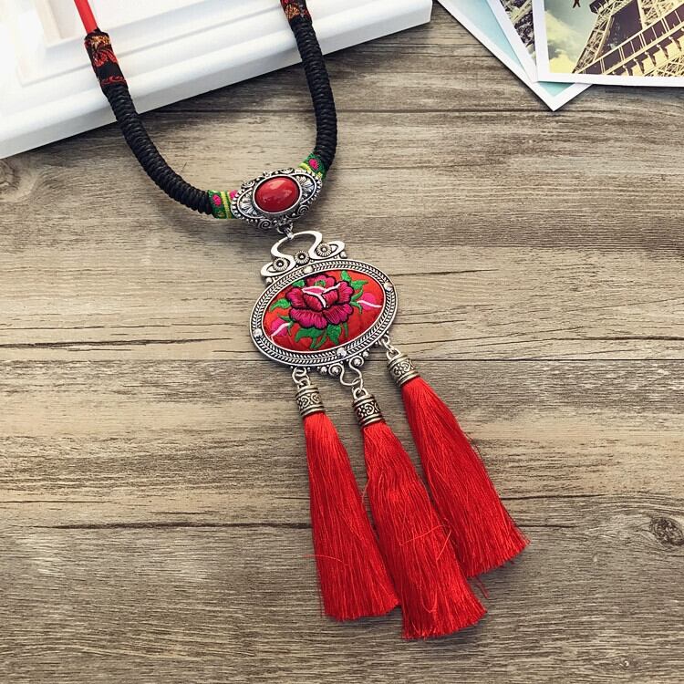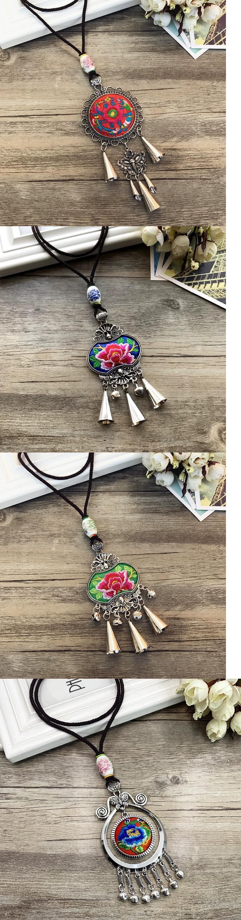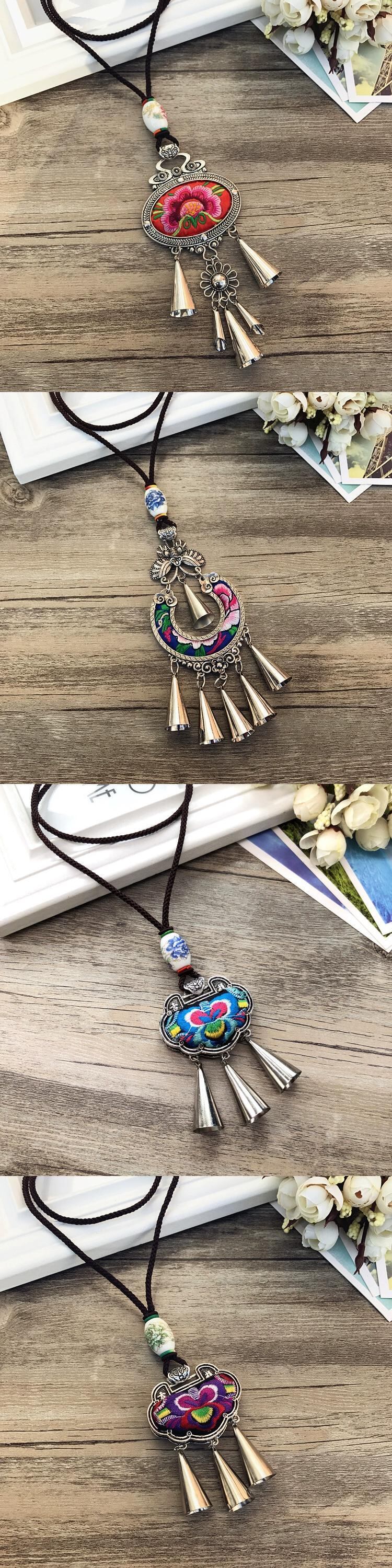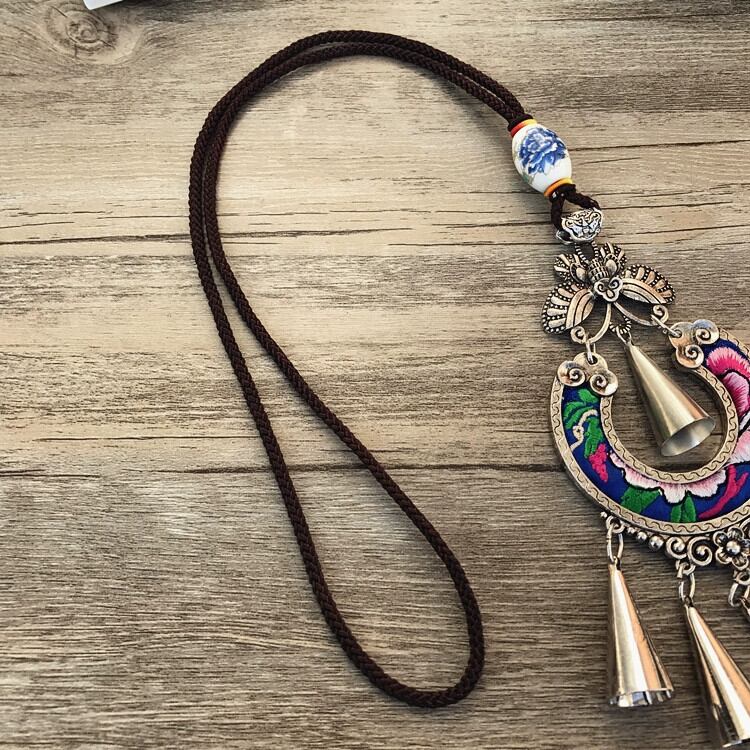 レトロロングファッションクリカル刺繍エスニックスタイル電話ネックレス気質風鈴ペンダントミャオ族セーターチェーンアクセサリー レース shipin89064127263