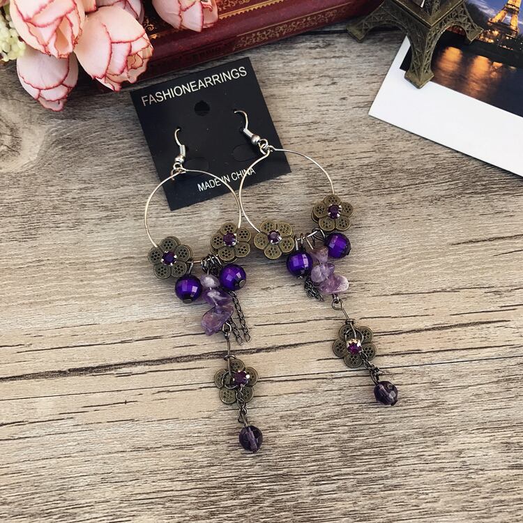 バルセロナスタイルヨーロッパとアメリカのレトロなイヤリングアメジストフラワーヒスイイヤリングエスニックスタイルテルイヤリング 指輪 フラワーデザイン 紫水晶 ジェード 翡翠 ヨーロピアン shipin90290478419