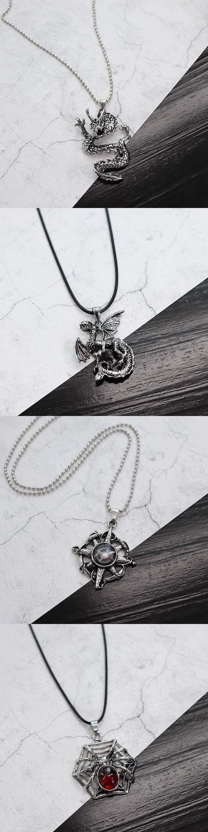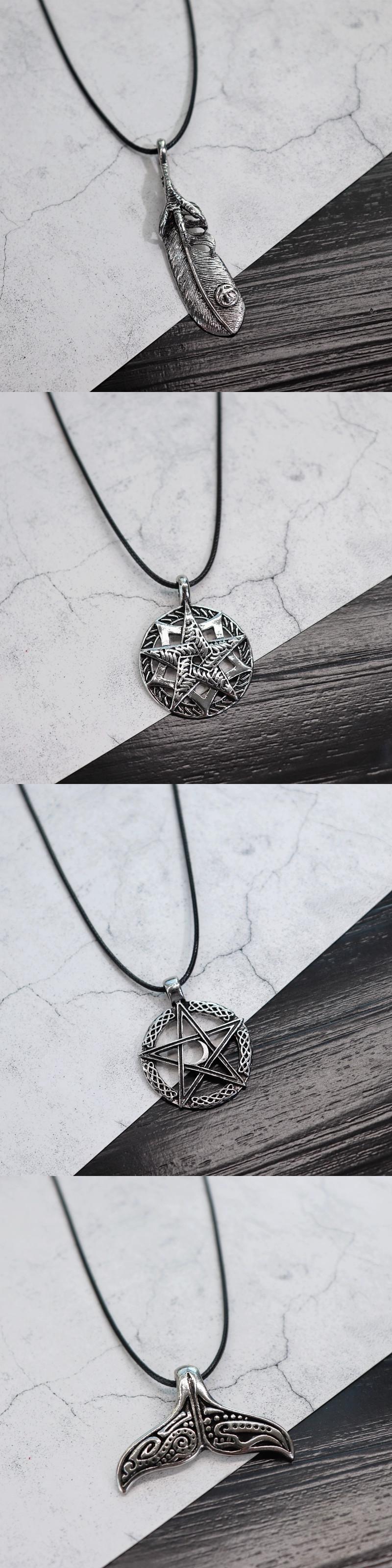 ファッションブランド男性と女性のカップルチタン鋼ネックレスレトロゴールドフープフェザー横暴な狼の牙六芒星ペンダントアクセサリー レース shipin80696215566