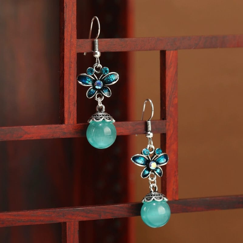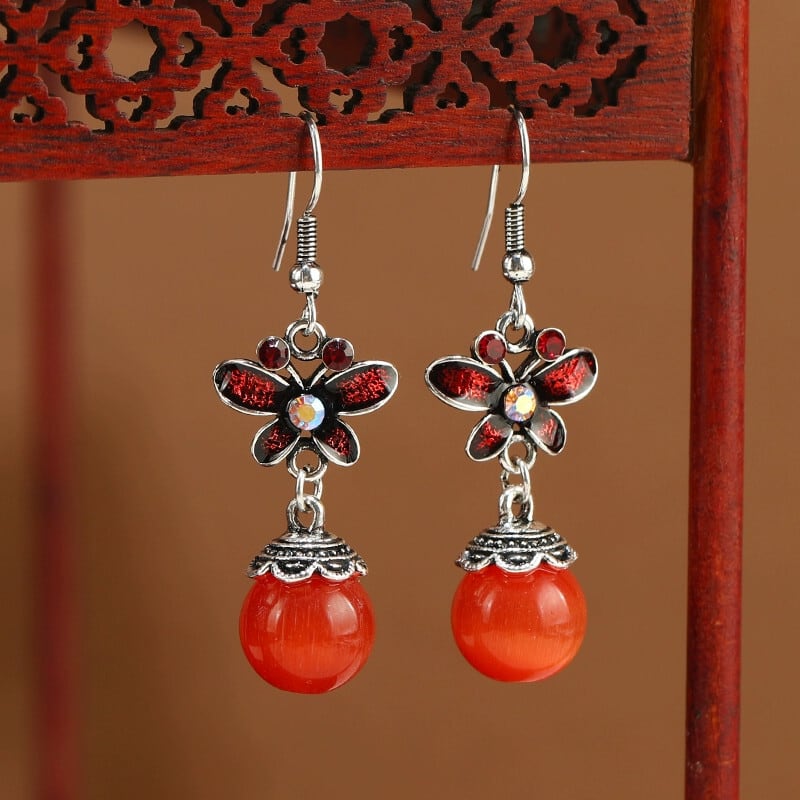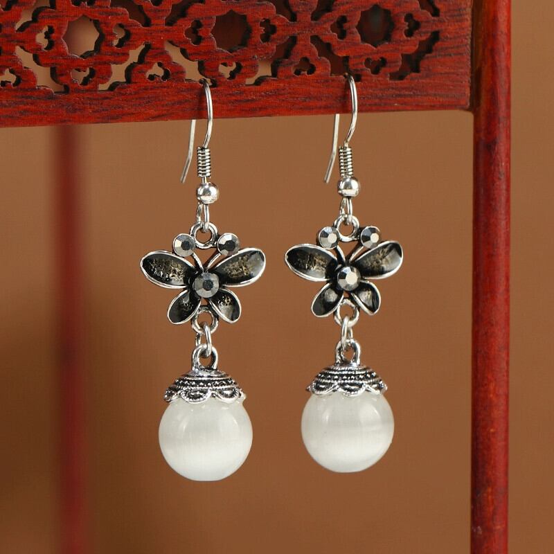 中国のオリジナルデザインの蝶のイヤリングシンプルなレトロキャッツアイイヤリングエスニックスタイルロングアンティークスタイルイヤリング女性 指輪 shipin82763521924