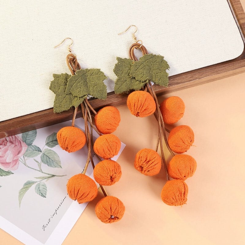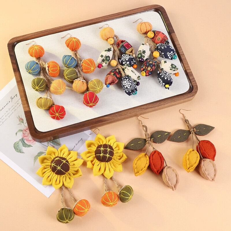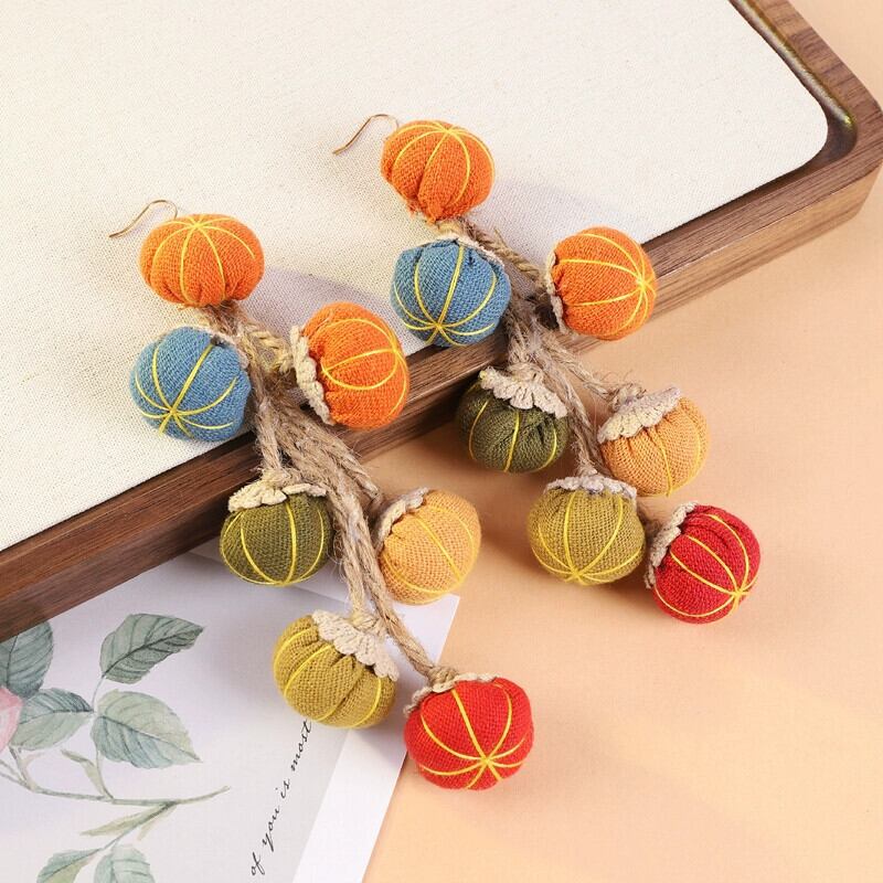 織物エストスタイルイヤリングレトロ文学ロングカボチャテルイヤリングニッチデザインエスニックスタイルイヤリング女性 指輪 shipin31058559079