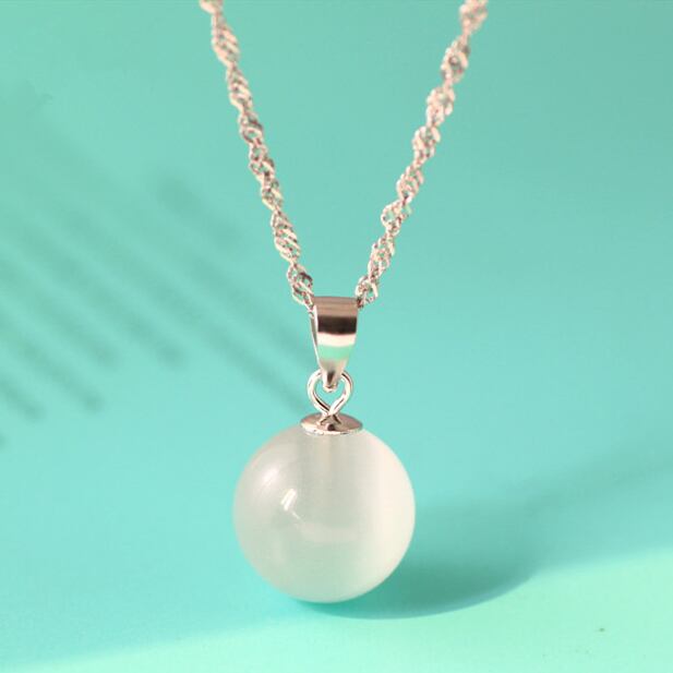 バージョンの美しいシルバー 925 プラチナキャッツアイストーンボールペンダントネックレスレディース鎖骨チェーンキャットアイファッションイヤリング レース 指輪 銀 shipin92102852291