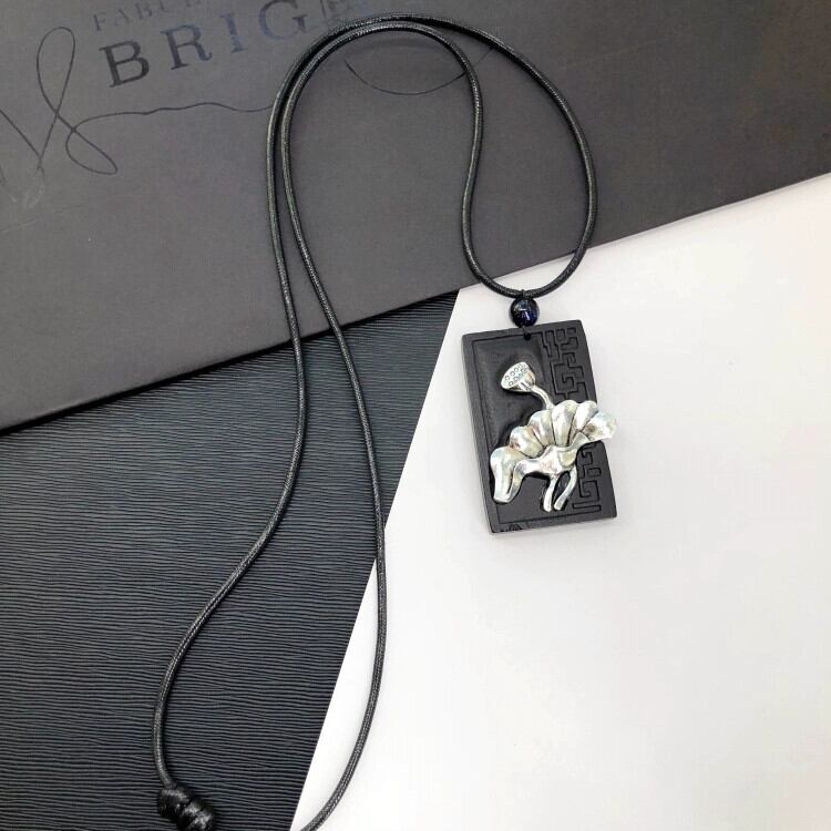 レトロ禅黒檀ロングネックレス女性、多用途ファッションエスニックスタイル文学衣類アクセサリーセーターチェーンペンダント レース shipin8859473649