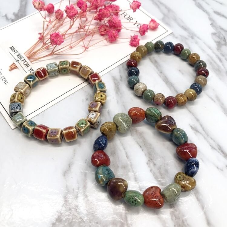 エスニックスタイルの花釉セラミックブレスレット、レトロなさまざまなペイント陶器ブレスレット、甘いカップル、男性用と女性用のブレスレット、多彩なアクセサリー 大人ガーリー スウィート キュート カジュアル フラワーデザイン shipin39359463909