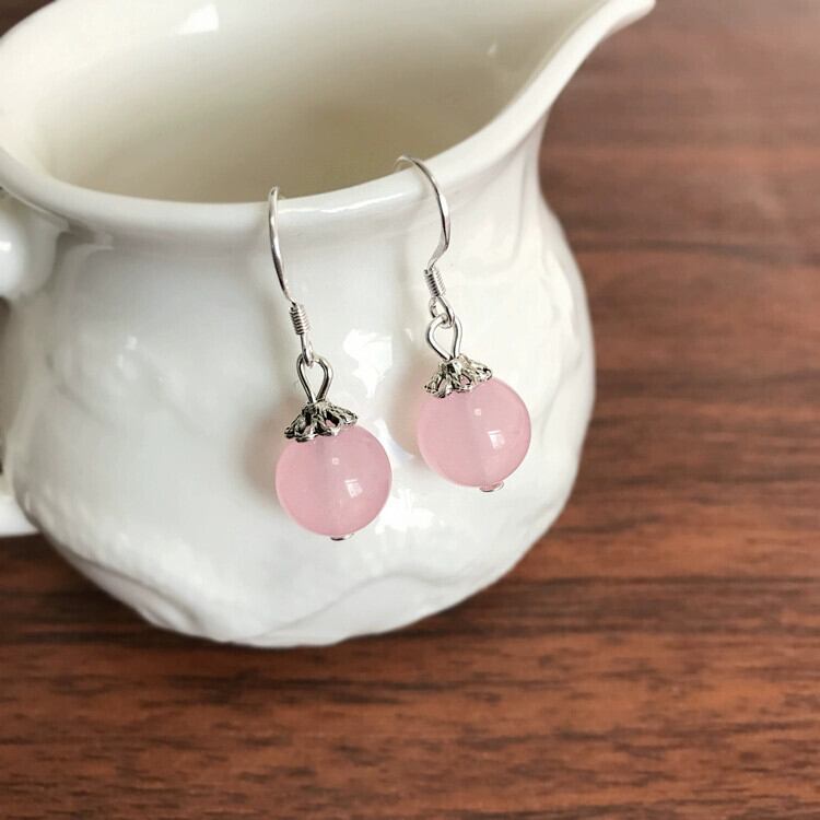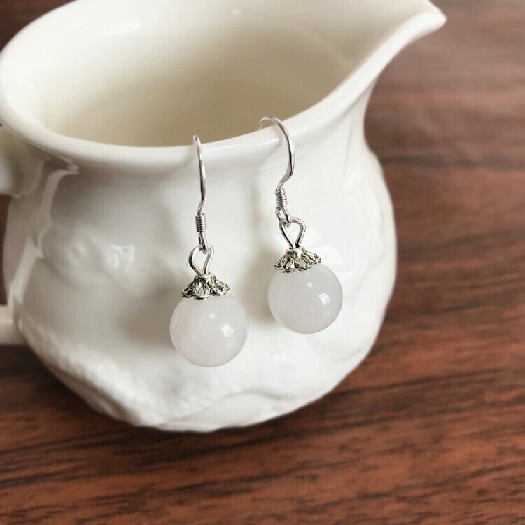 s925 シルバーフック天然水晶瑪瑙ビーズイヤリングフェミニンイヤリングシンプルレトロエスニックスタイル多用途イヤリング ナチュラル 指輪 銀 shipin84050770961