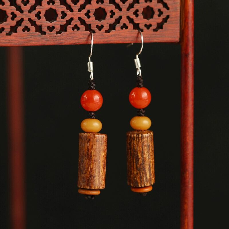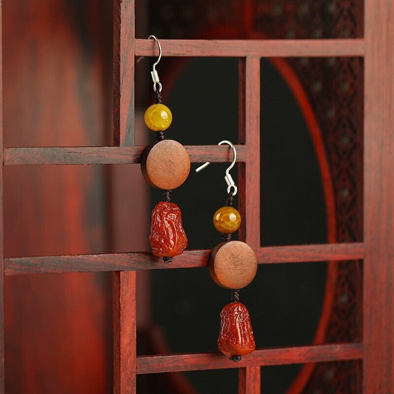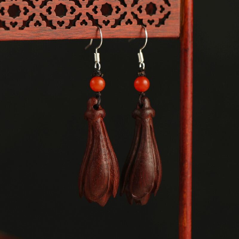 中国風のレトロなスタイルの禅イヤリング女性ニッチデザイン文学木製イヤリングロングエスニックスタイル電話イヤリング 指輪 shipin63543292561