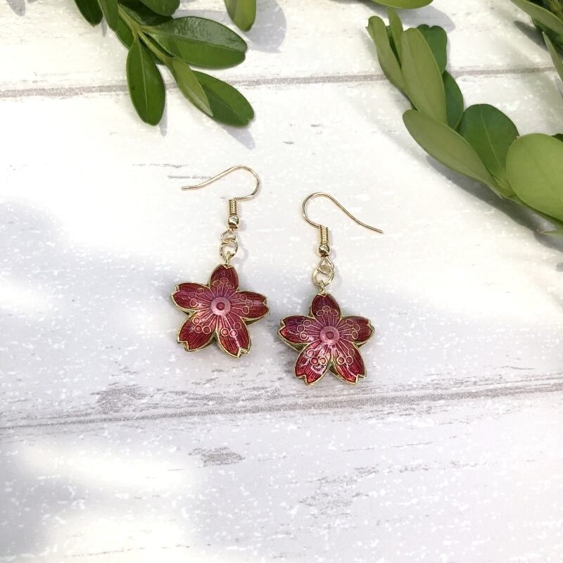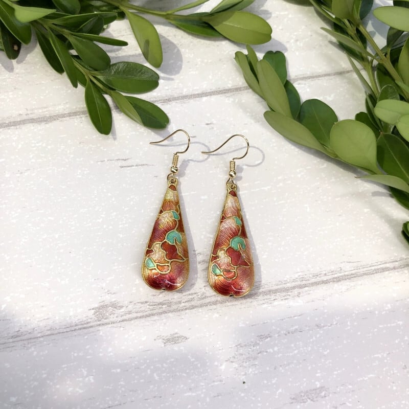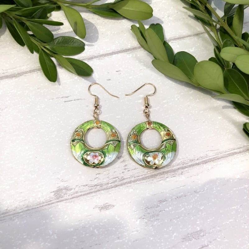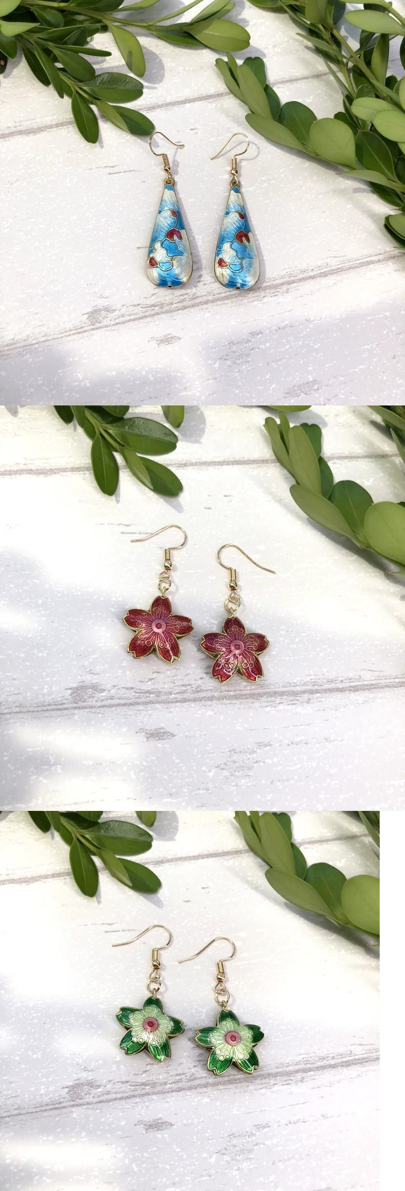 手作りの七宝イヤリングの女性、クリカルな気質、シンプルで多用途な水滴の花のイヤリング、レトロな耳のジュエリー 指輪 フラワーデザイン shipin22685282461