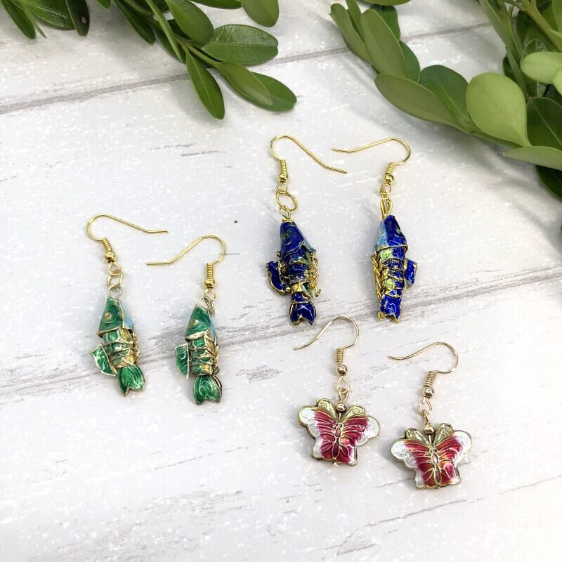 色:1-雁の帰還(エナメルに手描き),2角模様花(七宝),3マス模様フラワー(グリーン),4-深紅の蝶,5-七宝手描き青蝶,6-六面ペンダント,7-ウォータードロップペンダント(ファイアレッド),8-ウォータードロップペンダント(グリーン),9-ウォーターペンダント(天河ブルー),10-五角形の花(紫赤),11-五隅の花(緑),12丸ボタンフラワー(金緑),13-三日月(金緑),14-Zifeiyu(サファイアブルー),15-Zifeiの魚(緑)