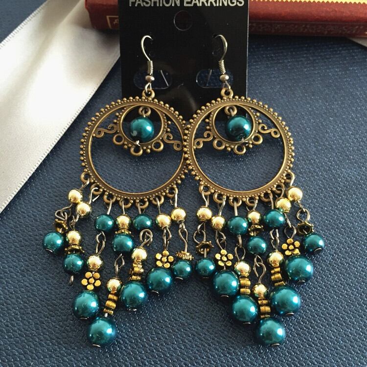 ヨーロッパとアメリカのレトロセレブスタイルのイヤリング、ファッショナブルで誇張されたボヘミアンテルパール、ブロンズのロングビーズイヤリング 真珠 指輪 ヨーロピアン shipin51876610380