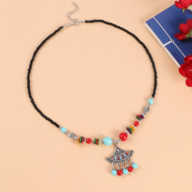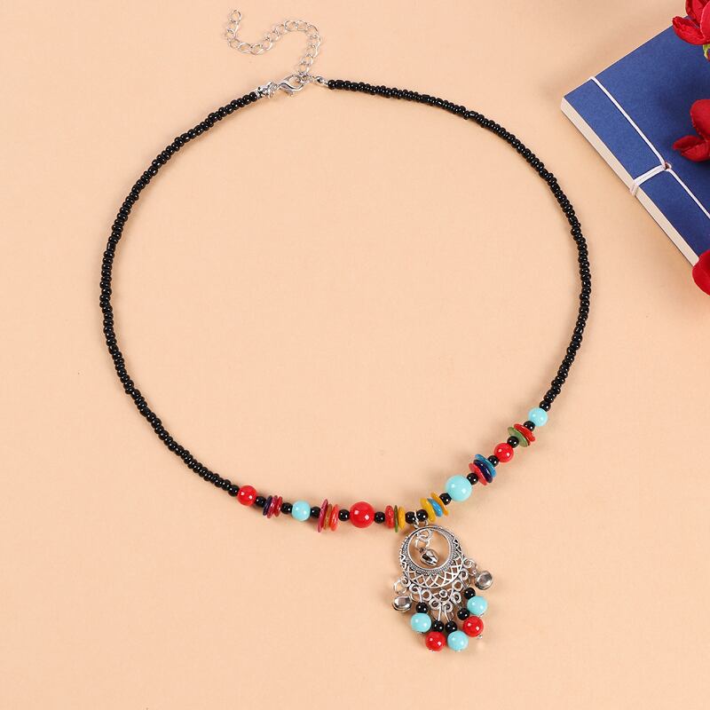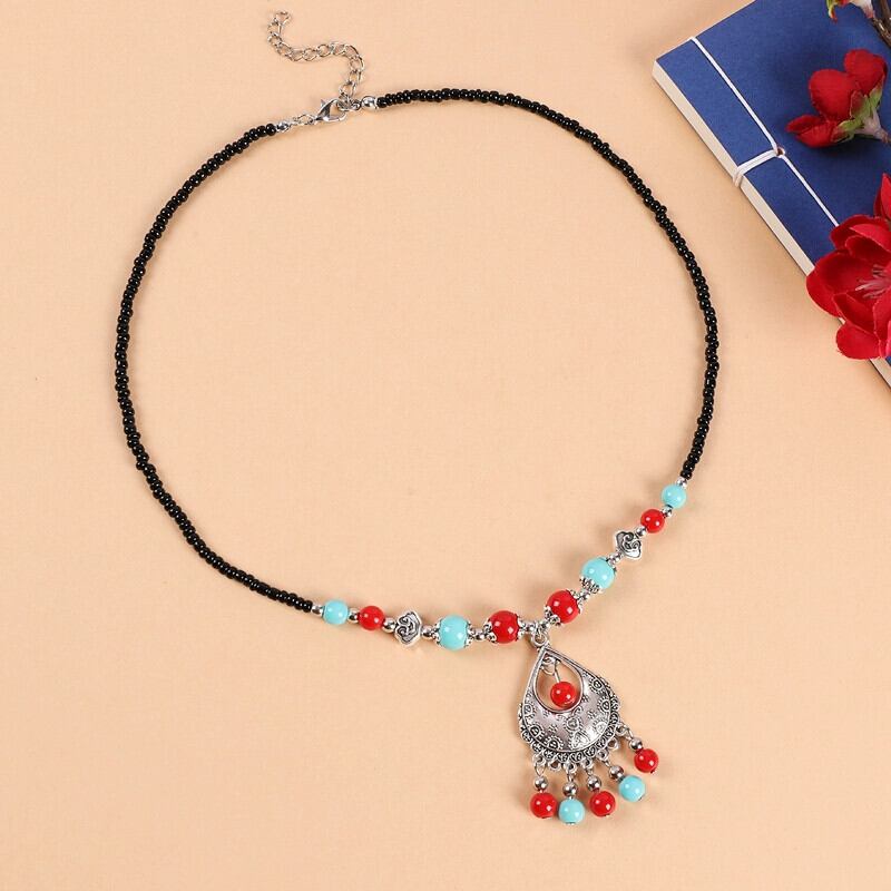 レトロエスニックスタイルビーズ電話 ehead 飾りチベットシルバー眉毛ペンダントエキゾチック鎖骨チェーン頭飾りネックレス古代スタイルのアクセサリー女性 レース 銀 shipin66234023749