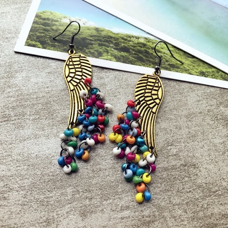 海辺のレトロエスニックスタイルのローズイヤリング、ヨーロッパとアメリカのファッショナブルなウィングテルイヤリング、フェミニンな小顔イヤリング 指輪 ヨーロピアン shipin69831952702