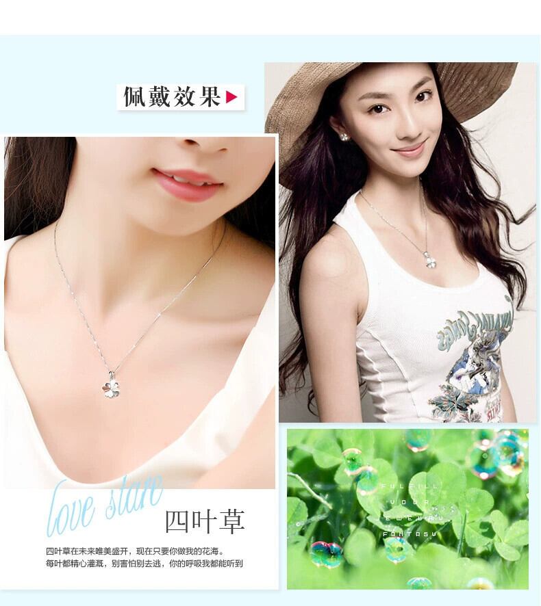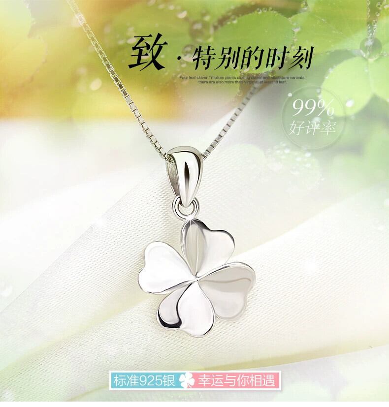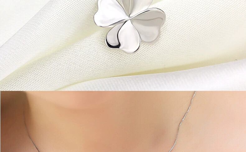 ファッション四つ葉のクローバー 925 シルバーネックレスレディースショートプラチナチェーン鎖骨チェーンハイエンドシンプルペンダントトレンディジュエリー レース 銀 shipin58874058378