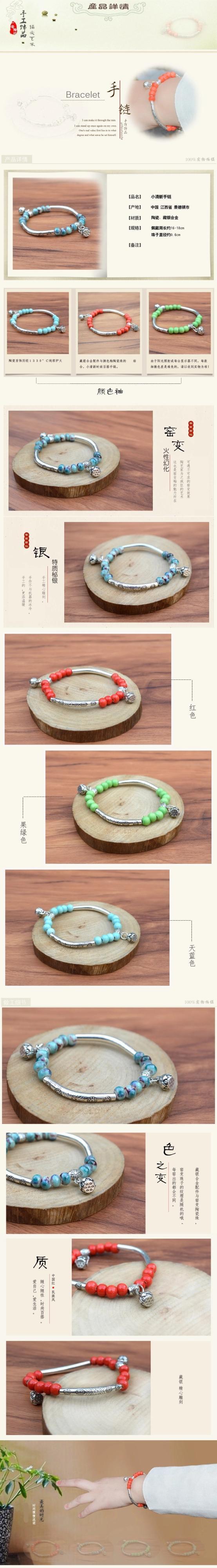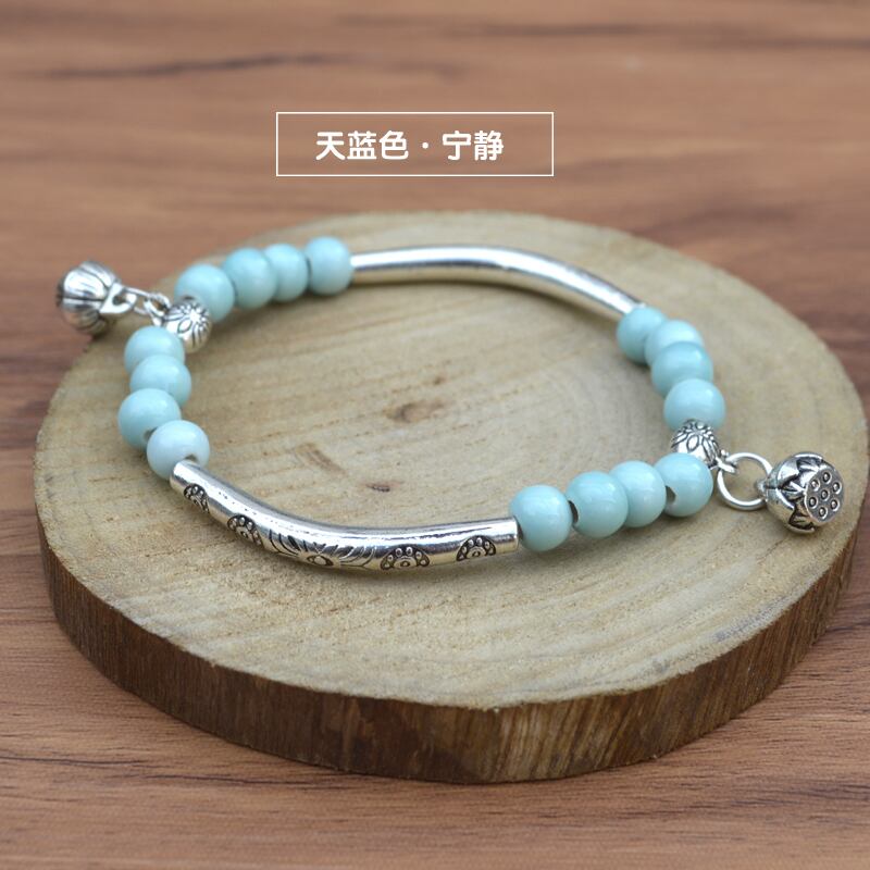 中国風の景徳鎮セラミックブレスレット小さな新鮮なチベットシルバーアクセサリーエスニックスタイルのセラミックブレスレットジュエリー 銀 shipin89409276779