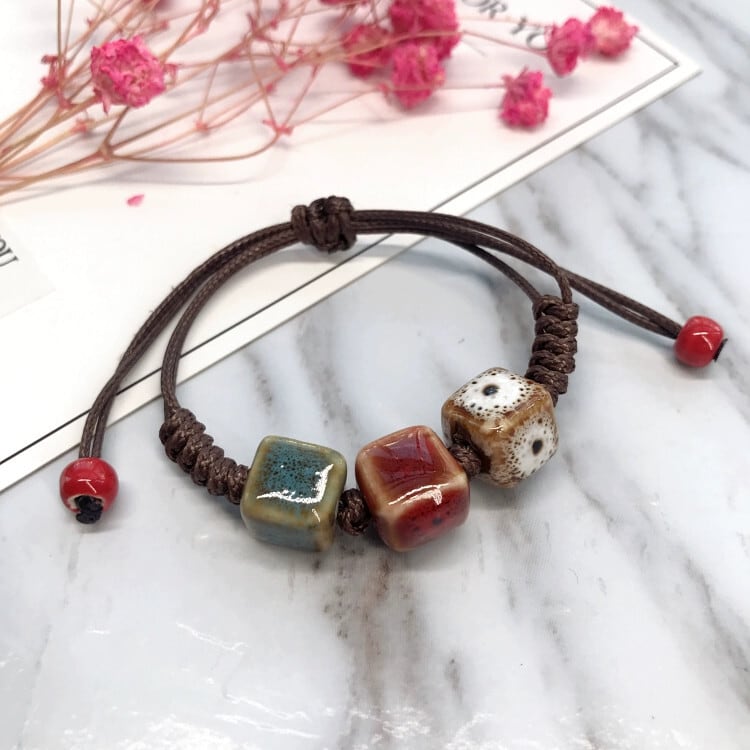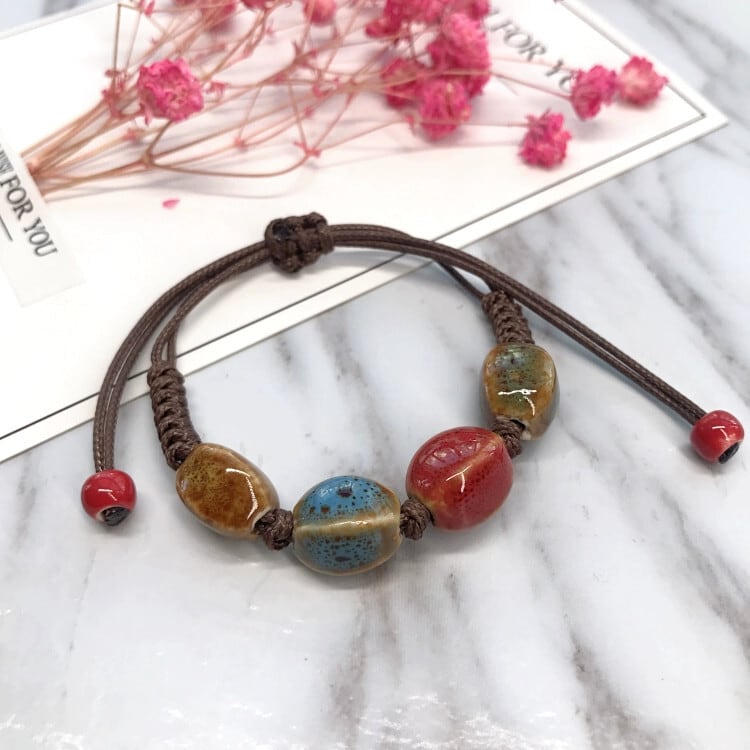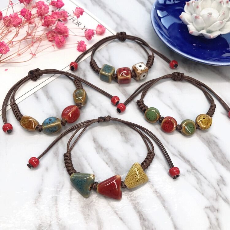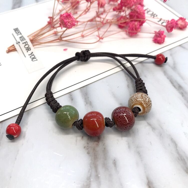 レトロな美的色の陶器甘いブレスレット小さな新鮮なセラミック編組花釉ブレスレットスタイルファッションカップルアクセサリー レッド 大人ガーリー スウィート キュート カジュアル フラワーデザイン shipin35247367007