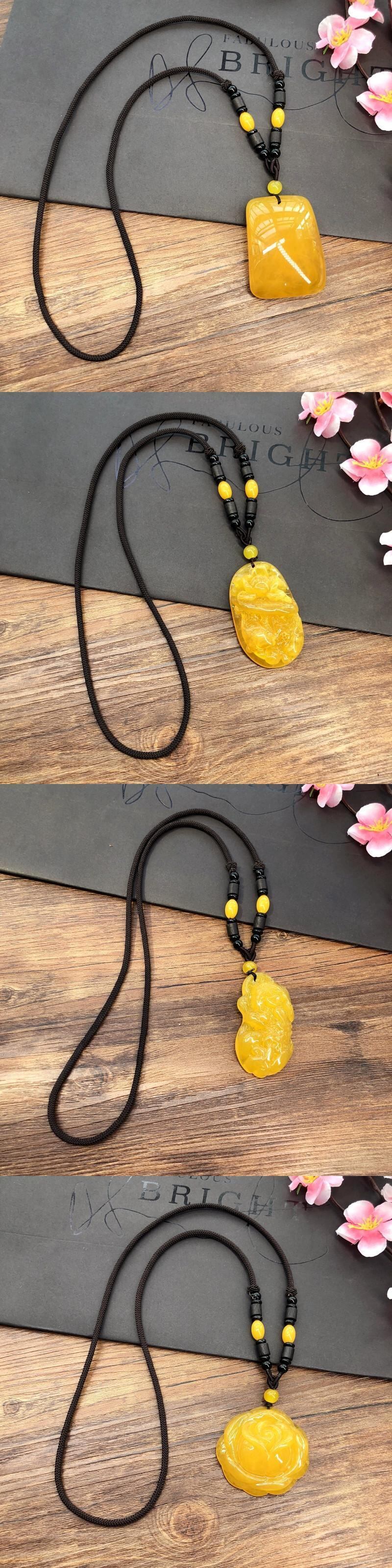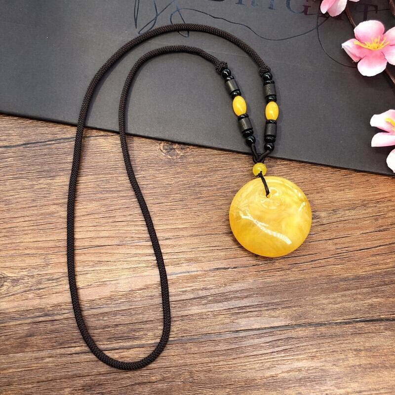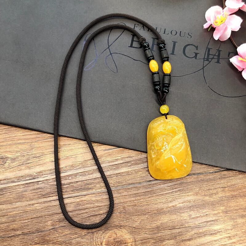 天然第二世代琥珀蜜蝋ネックレス、レトロエスニックスタイルのレディースロングセーターチェーン、彫刻ペンダント、メンズ、レディースアクセサリー レース ナチュラル アンバー shipin67947420887