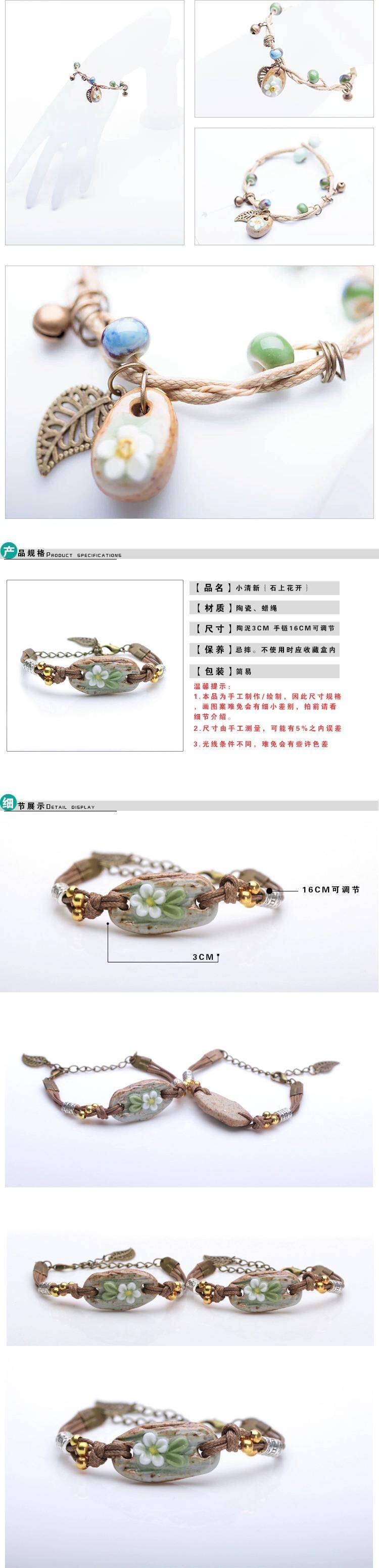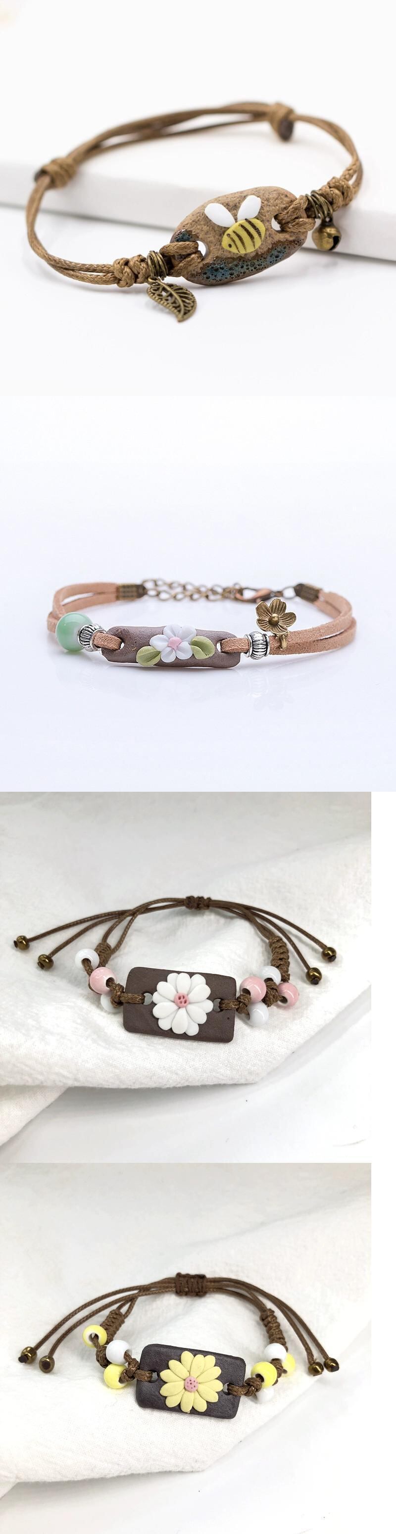 レトロエストスタイルのストーンフラワーブレスレット、スタイル女性エスニックスタイルのオリジナル手作りジュエリー、織りセラミックピンチフラワーブレスレット フラワーデザイン shipin86559828788