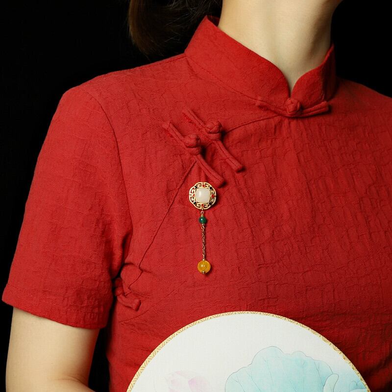 中国風のレトロな文学ブローチ天然クリスタルペンダントプレスボタン中国風のブローチコサージュ女性のチャイナドレスアクセサリー ナチュラル shipin26512409159