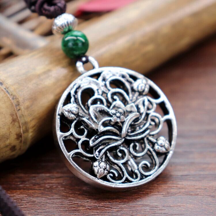 手作りレトロコットンとリネンチベットシルバーペンダントネックレスエスニックスタイルミッドレングスフラワー多用途セーターチェーン女性のシンプルなアクセサリー レース フラワーデザイン 銀 shipin20976320873