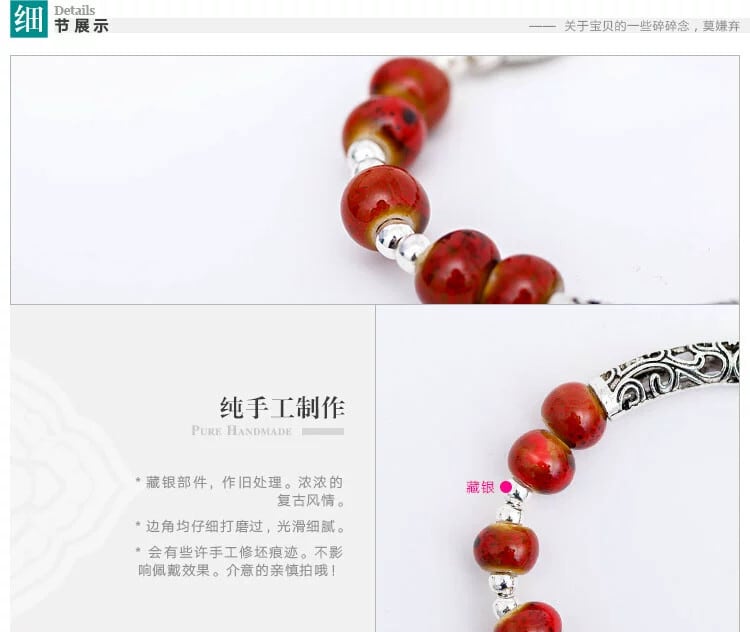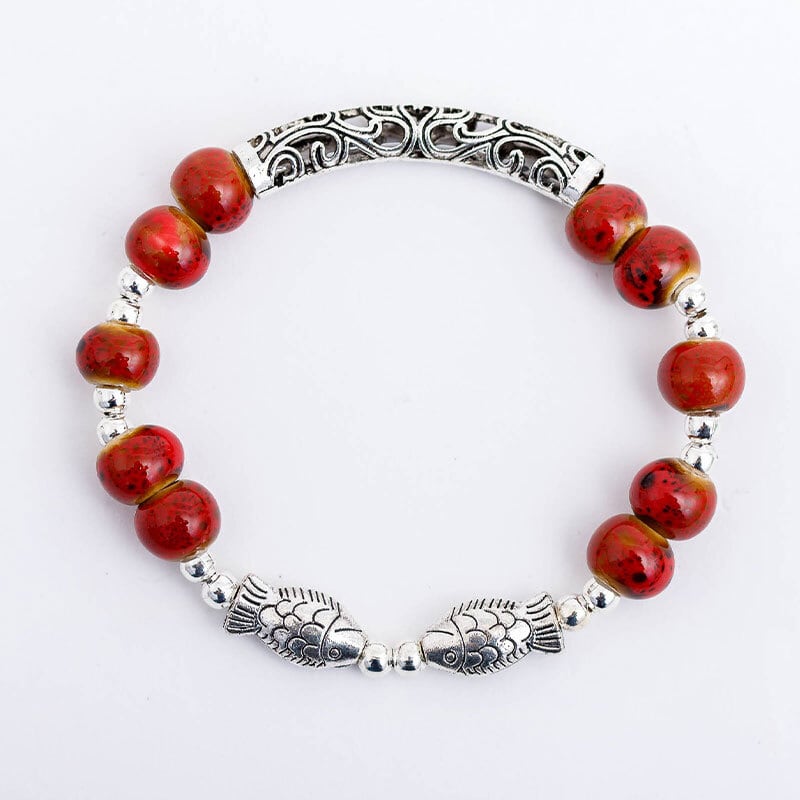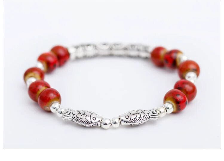 レトロセラミックレディースブレスレット、甘くて新鮮な小魚、エスニックスタイルの手作りチベットシルバー中空ブレスレットアクセサリーカップル 大人ガーリー スウィート キュート カジュアル 銀 shipin7780566912