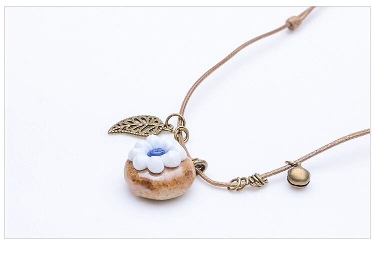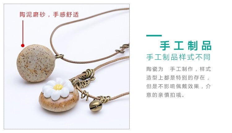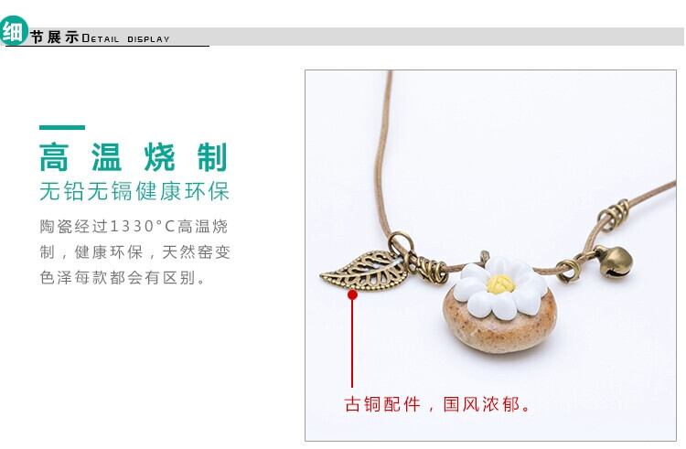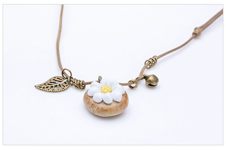 石の上に咲く花セラミックピンチフラワーネックレス、女性エスニック風ハンドメイドオリジナルエスト風かわいいベルシンプルアクセサリー レース 大人ガーリー スウィート キュート カジュアル フラワーデザイン shipin42705715949