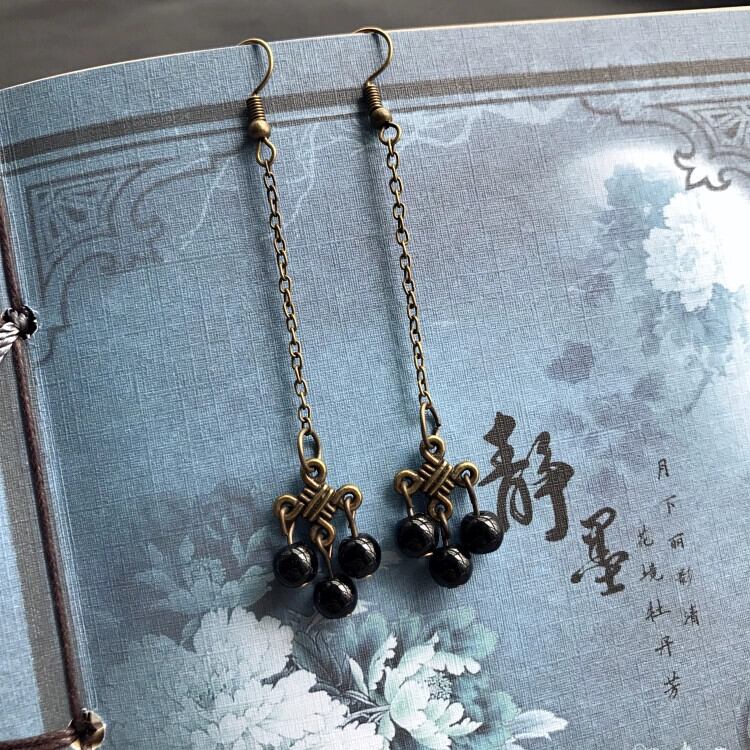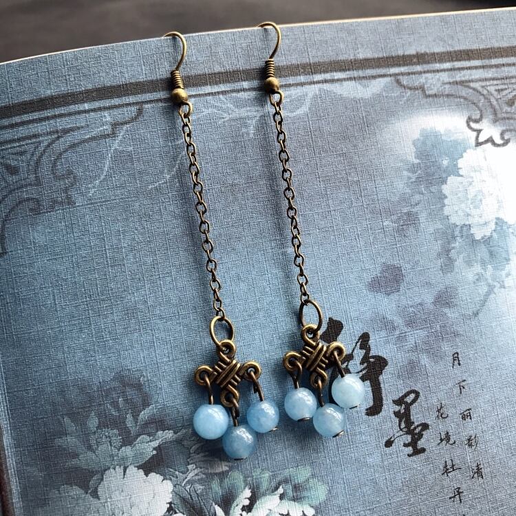 レトロなロングクリックヒスイイヤリング、女性のエスニックスタイルの多目的チャイニーズノットテルファッショナブルなイヤーアクセサリー 指輪 ジェード 翡翠 shipin15363839284