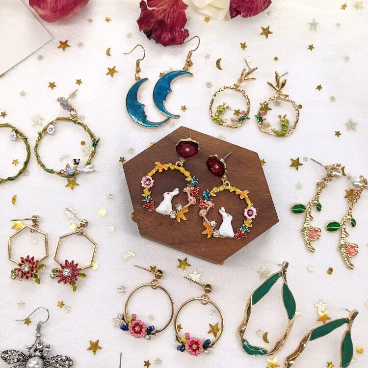 色:1-鳳飛イヤリング,2-赤い小さなキノコ,3-ガーランドホワイトラビット,4-フラワーフェアリー(水色),5-フラワーフェアリー(ピンク),6花枝,7-グレーダイヤモンドビー,8-幾何学的なゲサンの花,9-幾何学的なひまわり,10-シンプルマグノリア,11-シンプルなガーランド,12ソースレッドストロベリー,13.繊細な小さなパイナップル,14漫画のサボテン,15-フルハウス,16-キャタピラー,17-ダークグリーンツイストラウンド,18-estのささやき,19個の水滴パール,20-ハート型の蜂が飛んでいます,21の星空ブルームーン,22リング白木蓮,23-パールビー,24-ダイヤモンドワスプ