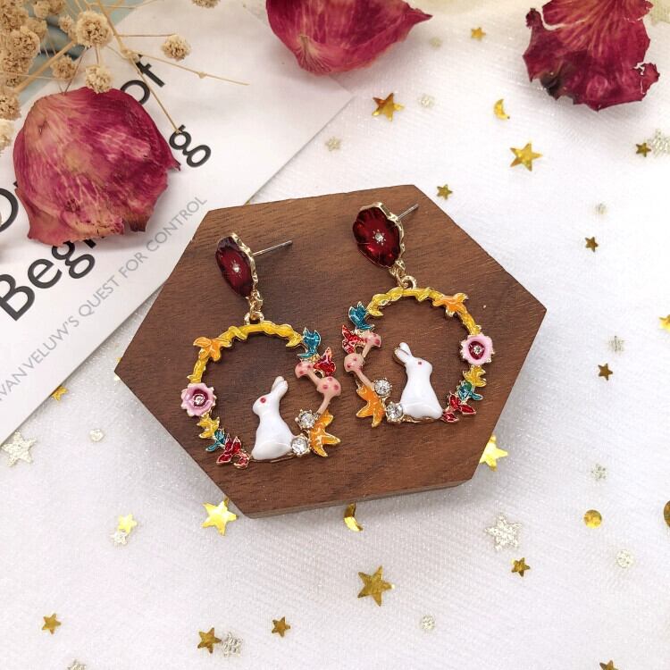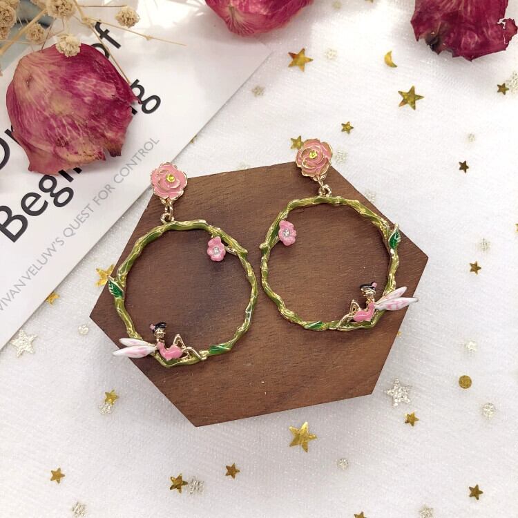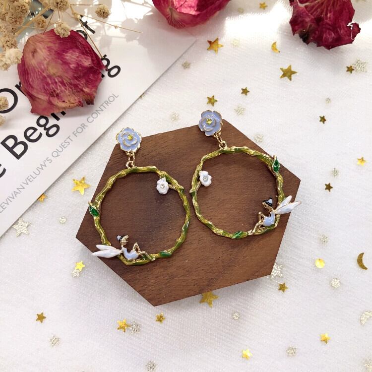 EST スタイル美的アリスワンダーランドおとぎ話イヤリングフラワースタッズダイヤモンドイヤリング女性シンプルな多用途とかわいい気質イヤリング 大人ガーリー スウィート キュート カジュアル 指輪 フラワーデザイン shipin7782363662
