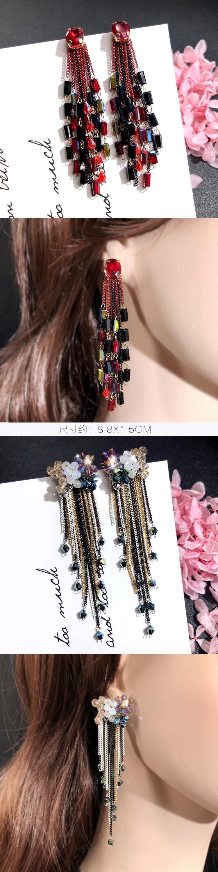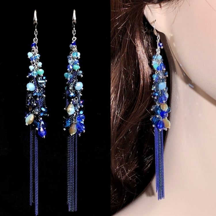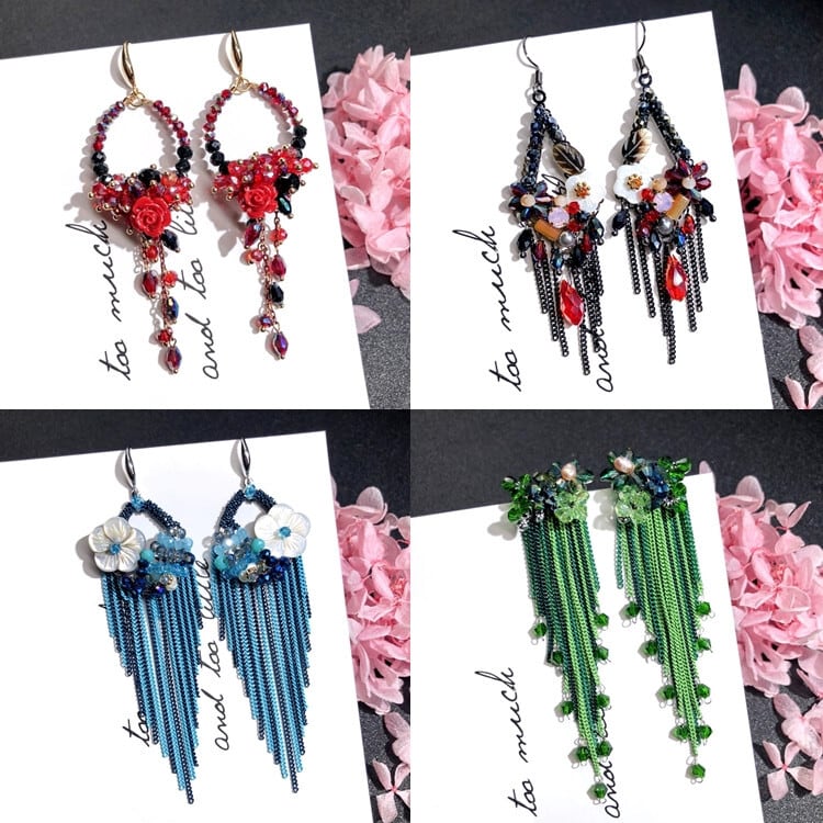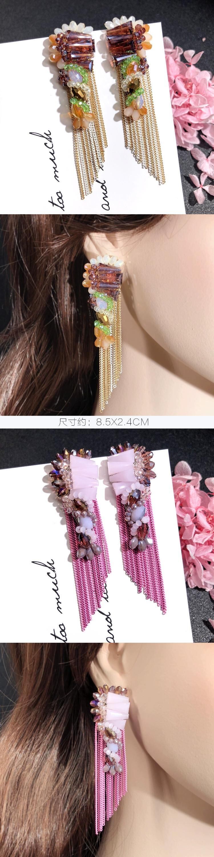 豪華でレトロな手作りクリスタルイヤリング、フェミニンで多用途、ロングテルブライダルイヤリング、ハイエンドイヤリング 指輪 shipin64043963367