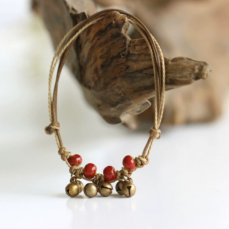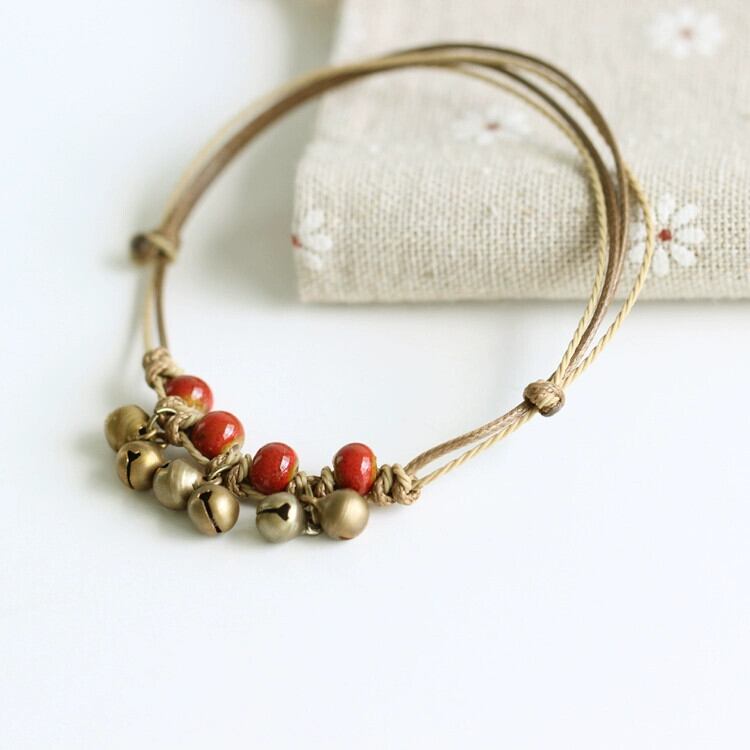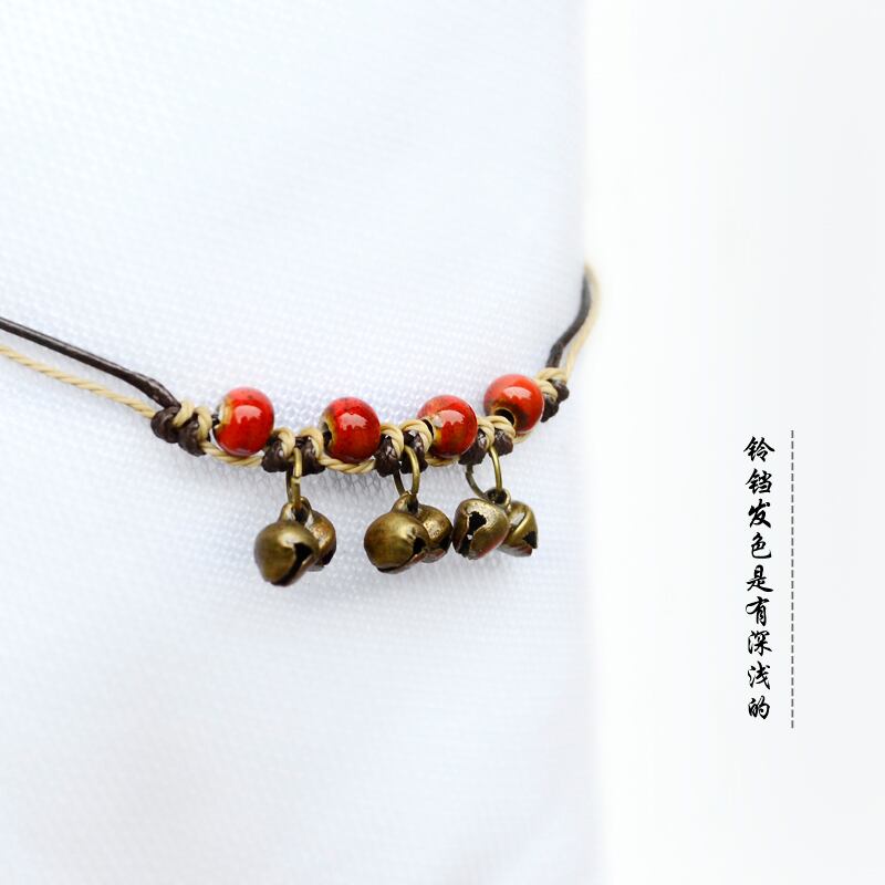 レトロエスニックスタイルオリジナルデザインボヘミアンベルアンクレットセラミックエスト手織りサマーアンクレット 夏物 shipin40978405730