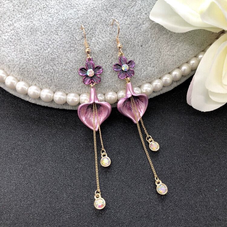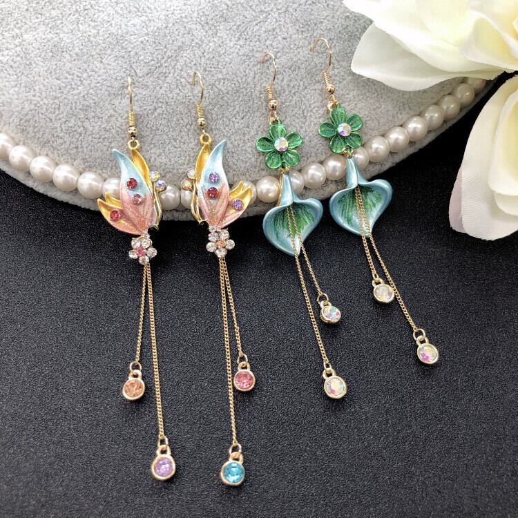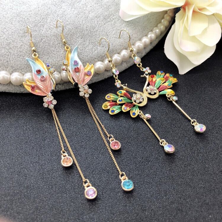 ese とファッションライト高級ダイヤモンドサンドブラスト電話イヤリング蝶の花のイヤリング女性のロングスタイル気質多目的耳ジュエリー 指輪 フラワーデザイン shipin20899083523