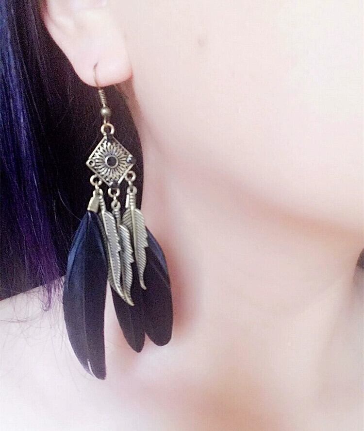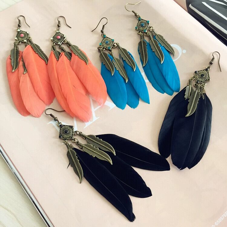 ボヘミアンヨーロッパとアメリカのレトロスタイルのフェザーテルイヤリング、ブロンズリーフのエレガントで誇張されたイヤリング、女性のイヤーアクセサリー 指輪 ヨーロピアン shipin13241135911