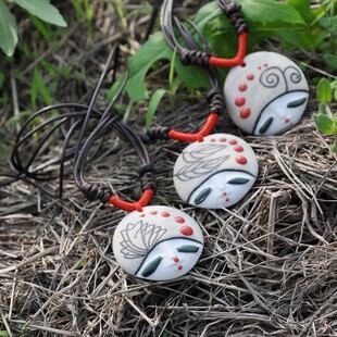 セラミック手作りジュエリー中国風レトロエスニックスタイルかわいい人形ヘッド美顔ネックレスペンダント女性 レース 大人ガーリー スウィート キュート カジュアル shipin57946200770