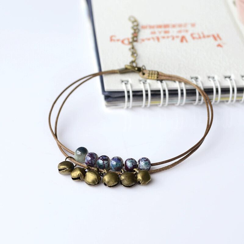 エスニックスタイルレトロエストボヘミアンセラミックアンクレット小さな新鮮なシンプルな二層ベルアンクレットレディースアクセサリー shipin76761677181
