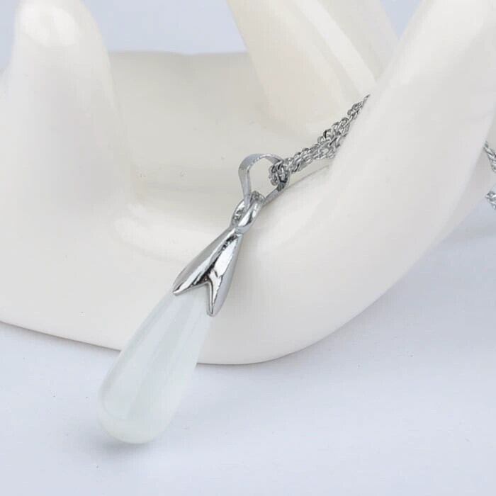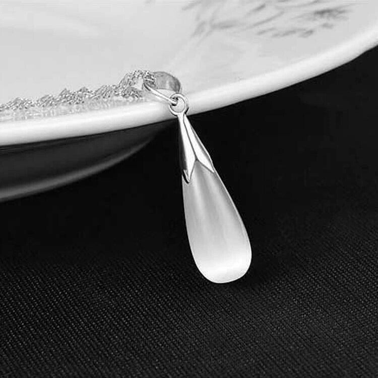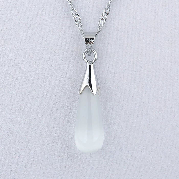 プラチナキャッツアイストーンネックレスレディースファッショナブルな気質ウォータードロップムーンストーンペンダント多用途シンプルな鎖骨チェーンジュエリー レース shipin51407774265