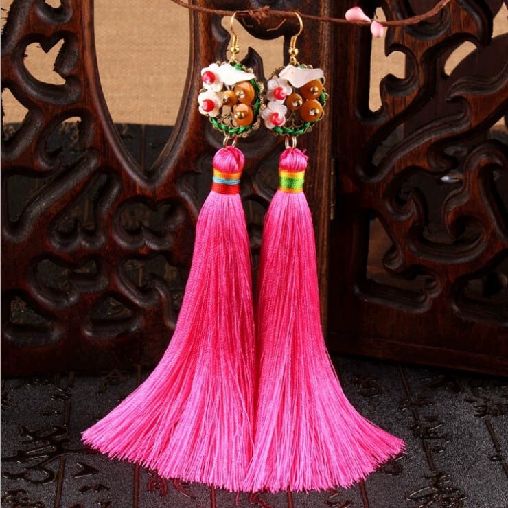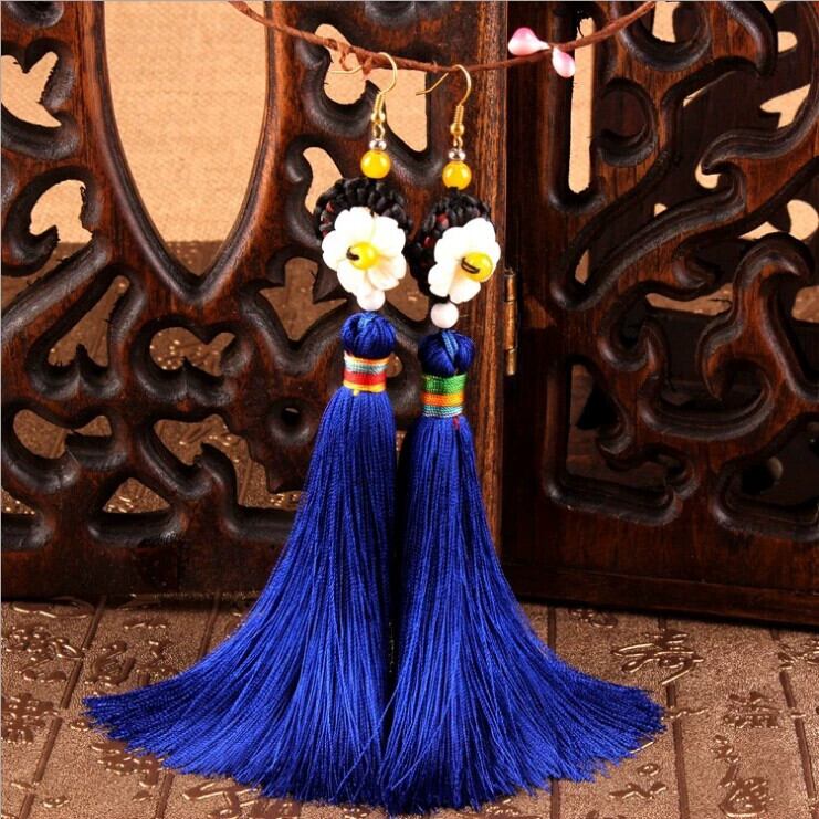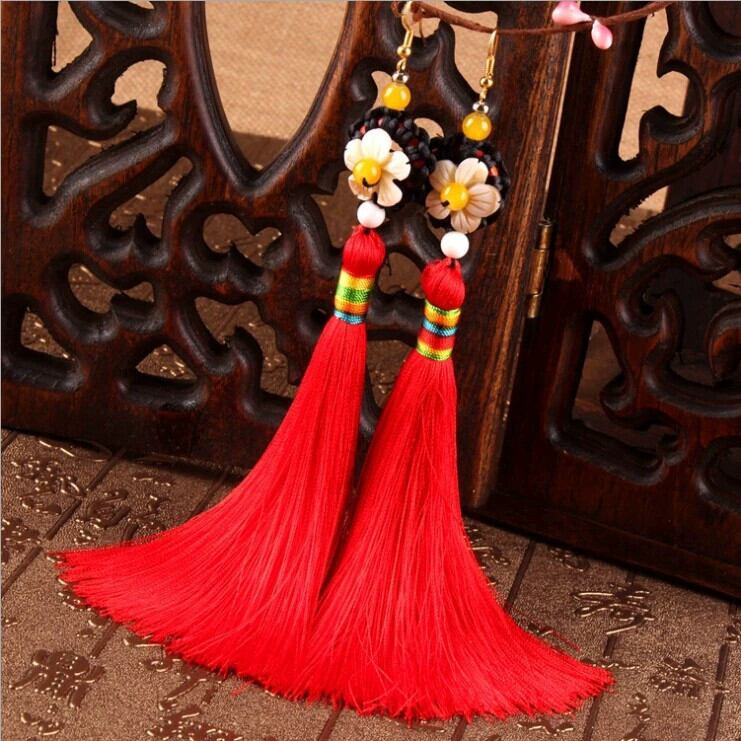 レトロファッションエスニックスタイルシェル五弁花テルイヤリングボヘミアンブライダルイヤリング気質女性のロングイヤリング 指輪 フラワーデザイン shipin8034357200