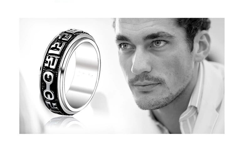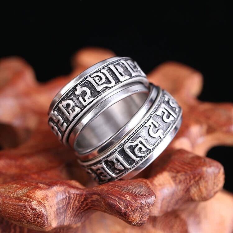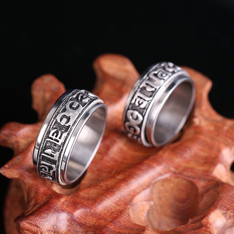レトロクリック6文字マントラチタンスチールリング、多用途でシンプルなテールリング、回転可能なメンズパーソナライズされた気質リング 指輪 shipin46163512879