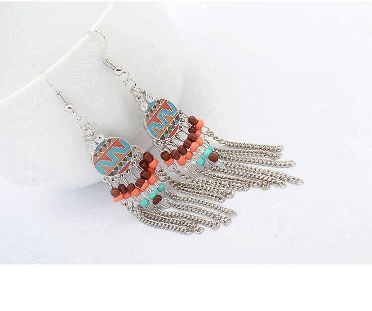 レトロなヨーロッパとアメリカのファッションエスニックスタイル電話イヤリングローマスタイル塗装ビーズ長い気質イヤリングアクセサリー ロング 指輪 ヨーロピアン shipin18087637162