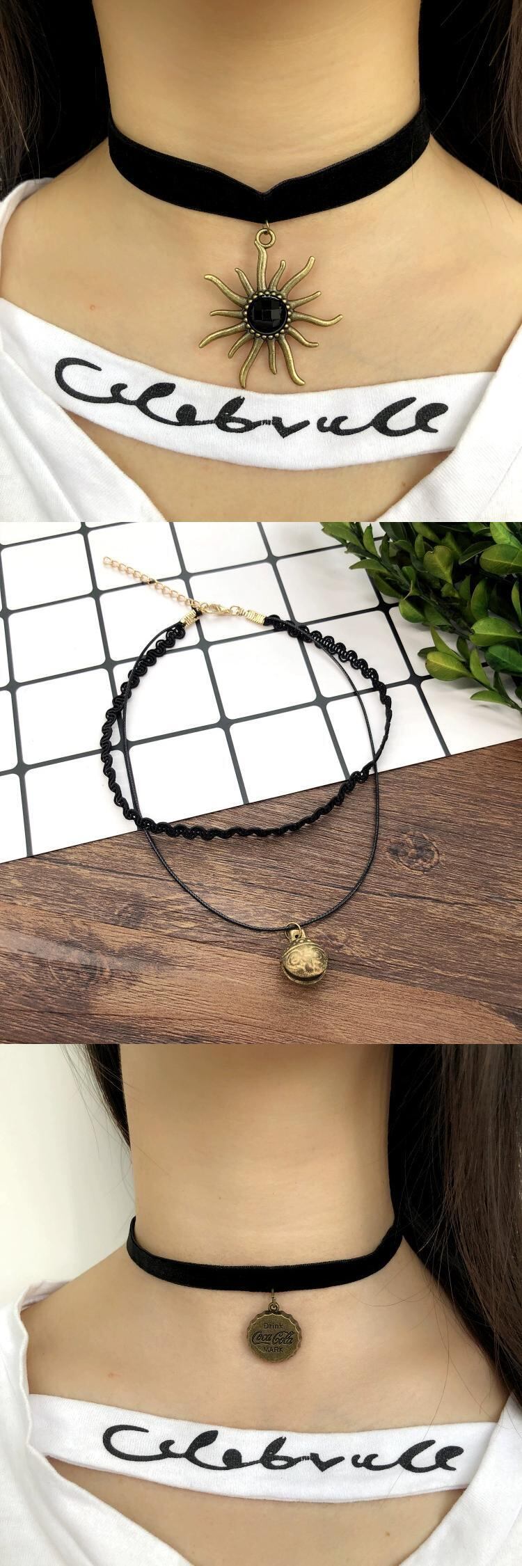 レトロ多用途ネックレス電話ペンダント鎖骨ネックレス女性のショートシンプルな気質ネックバンドトレンディなアクセサリー レース shipin15718112599