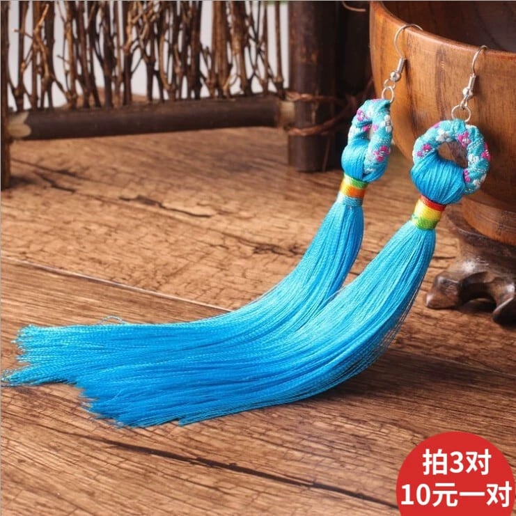 雲南風レトロロングテルイヤリングファッショナブルなエスニックスタイルの万能イヤリングカラフルな美しいイヤリング 指輪 shipin74767347299