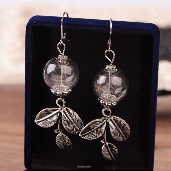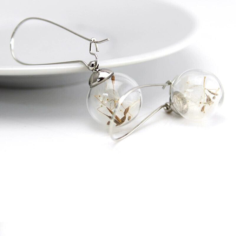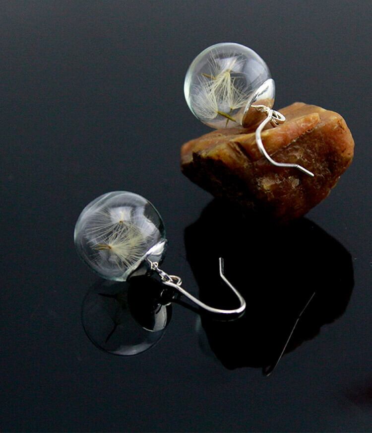 レトロエストスタイル美しいタンポポGLボールイヤリングレディースシンプルイヤリングドライフラワー植物イヤリングイヤリング 指輪 フラワーデザイン shipin7673655387