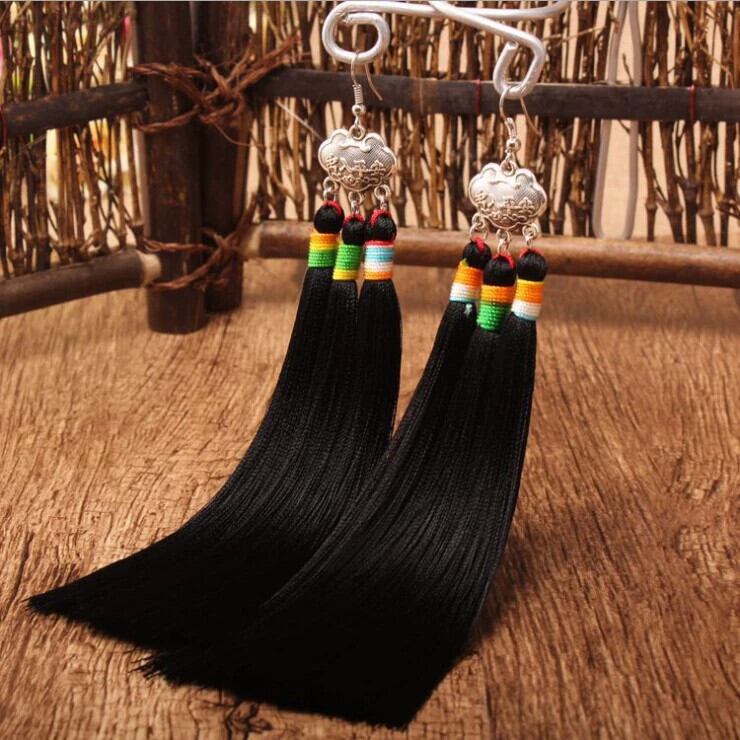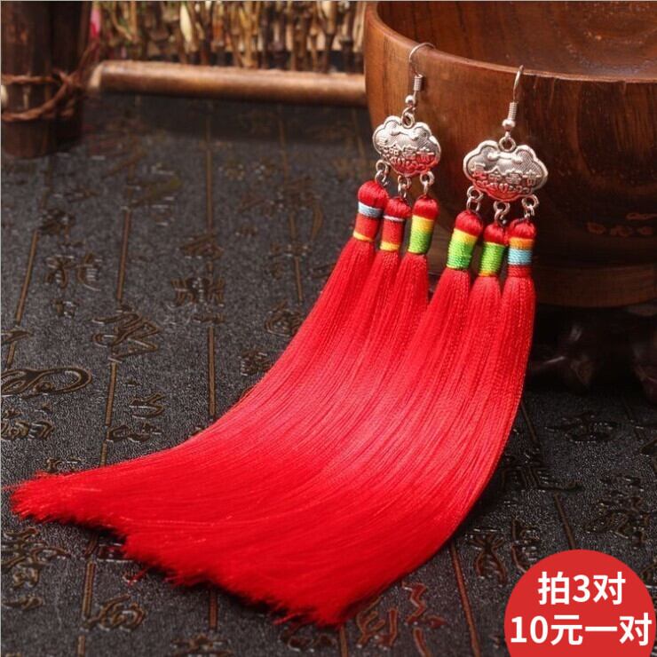 レトロエスニックスタイル長寿ロック電話イヤリング中華民国古代スタイルブライダルイヤリング気質ロング女性のホリデーイヤリング 指輪 shipin67836225640