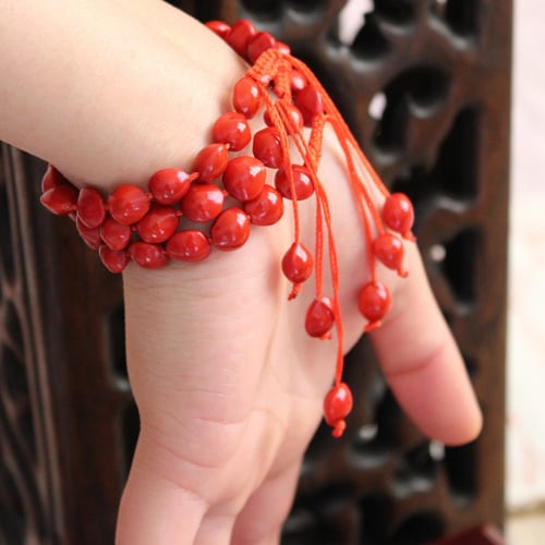 天然恋人アカシア豆ブレスレット小豆ブレスレットカップル多用途幸運平和赤いロープ編組菩提豆アクセサリー レッド ナチュラル shipin75352151597