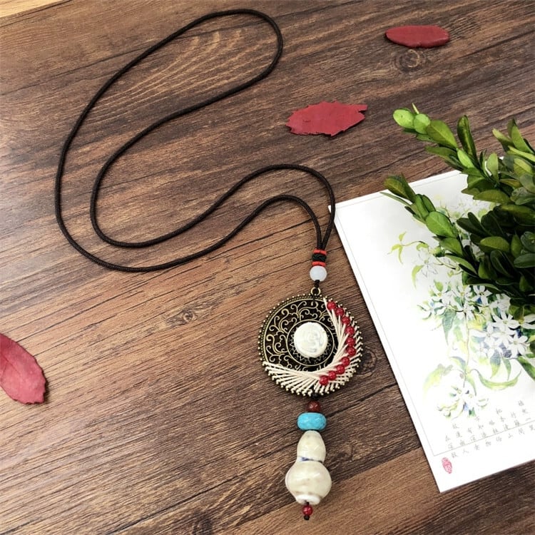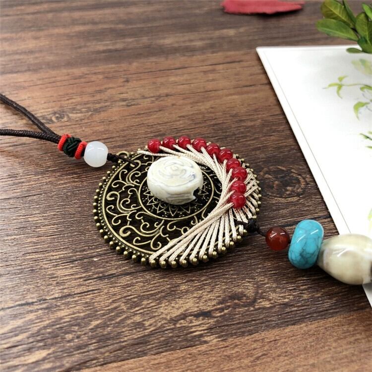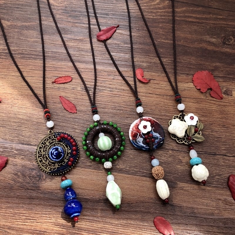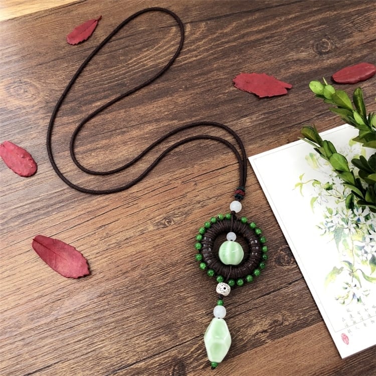 手作りオリジナルレトロエストスタイルセラミック翡翠ネックレス文学的でフェミニンな気質多用途シンプルなロングセーターチェーンペンダント レース ジェード ヒスイ shipin60724575971