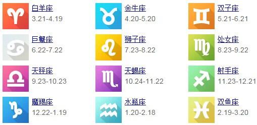 色:牡羊座,てんびん座,おうし座,蠍座,ジェミニ,射手座,癌,山羊座,レオ,水瓶座,おとめ座,うお座